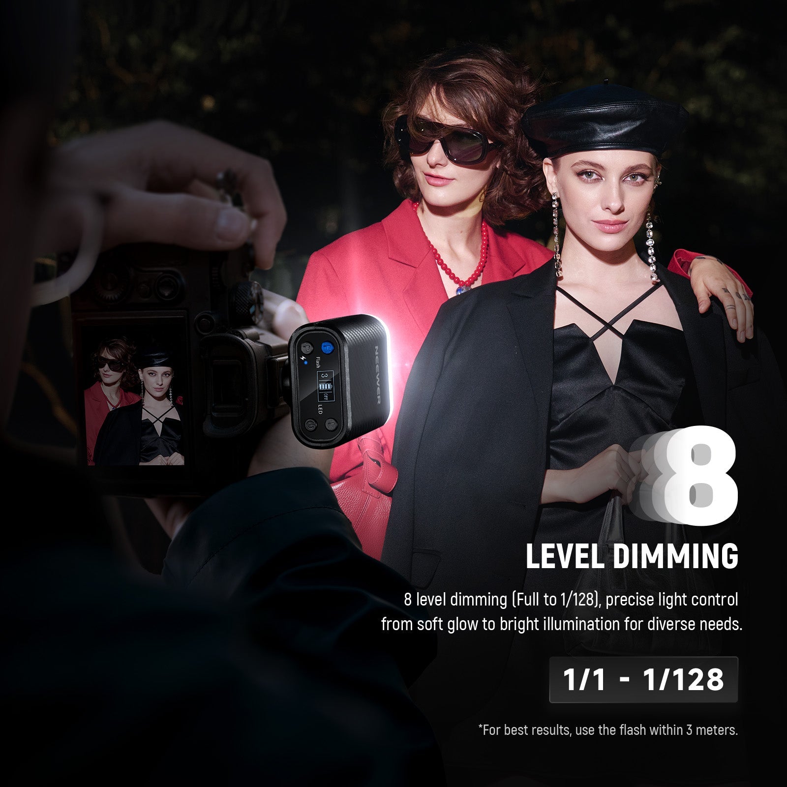 - 8 Flash Output Options with 800mAh Battery- Easily adjust the flash intensity with 8 selectable power levels, ranging from 1/1 to 1/128. Whether you need a soft glow or high output illumination, you have full control to adapt the lighting to match your scene and creative needs. The built in 800mAh rechargeable battery supports 500-700 flashes, ensuring extended shooting sessions without frequent recharging, making it perfect for on the go photography and mobile setups