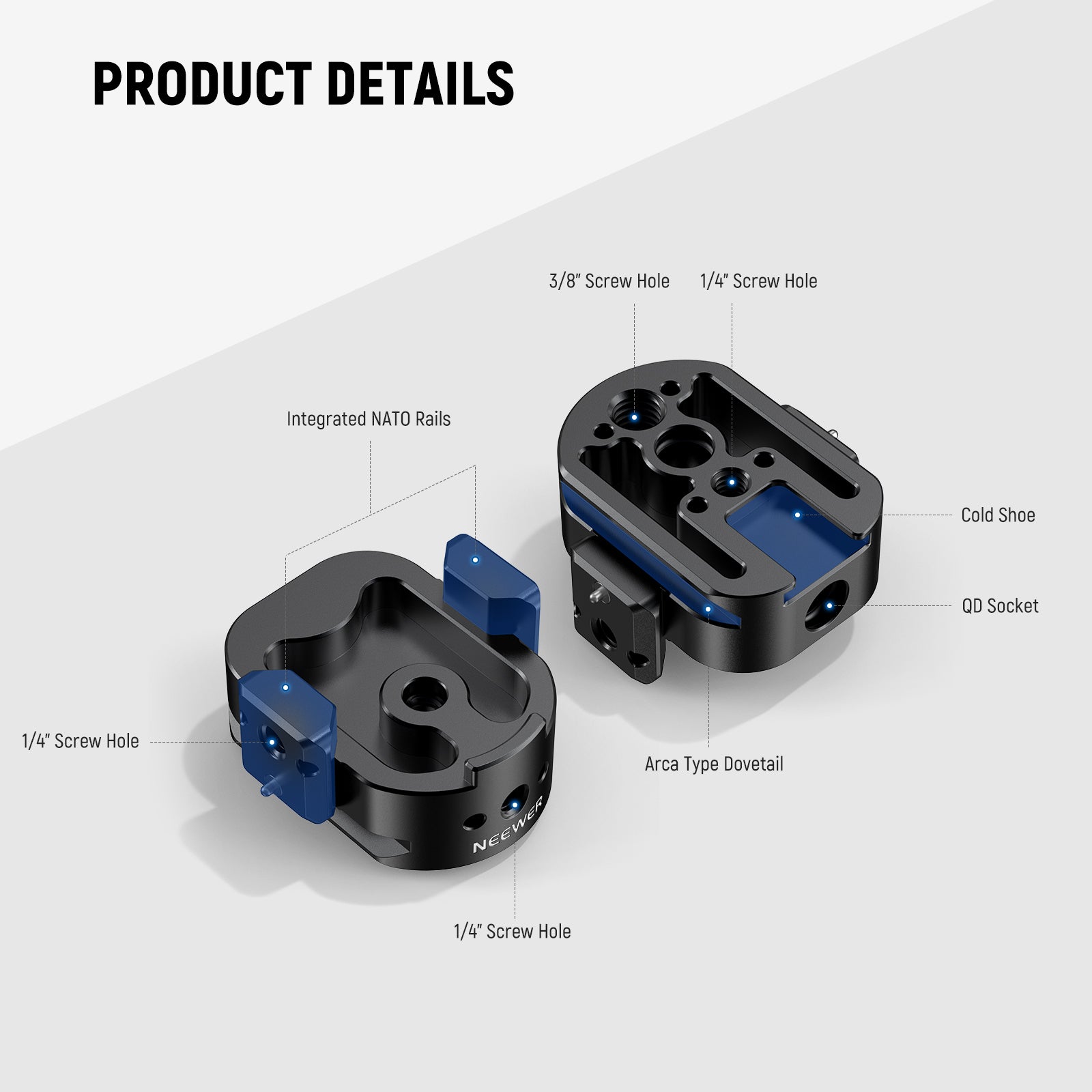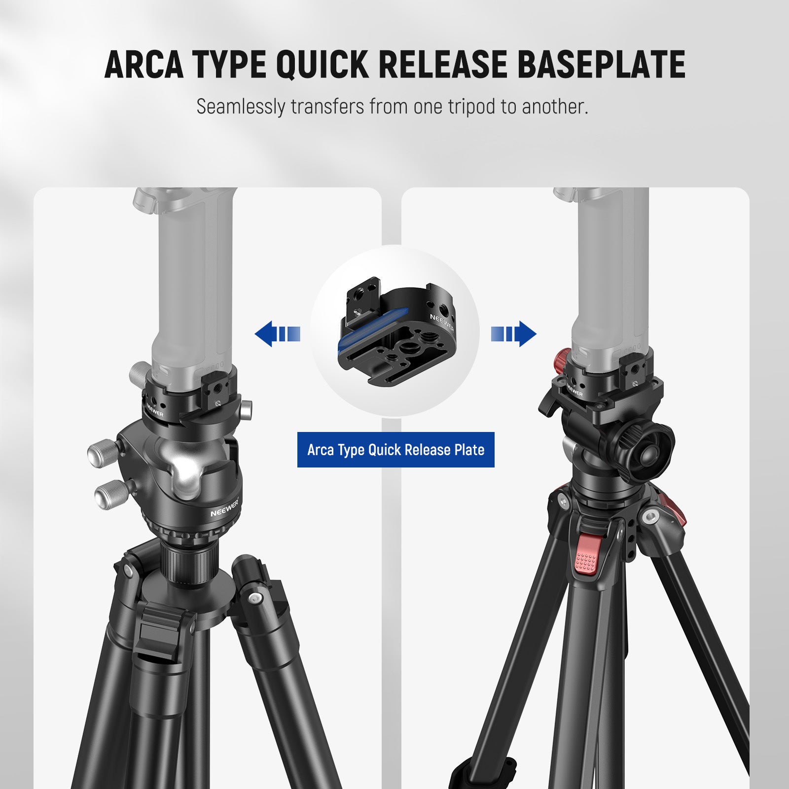- Arca Type Quick Release Baseplate- Equipped with standard arca type dovetails, it can be mounted on tripod heads, ball heads, and fluid heads compatible with Arca Swiss quick release system
