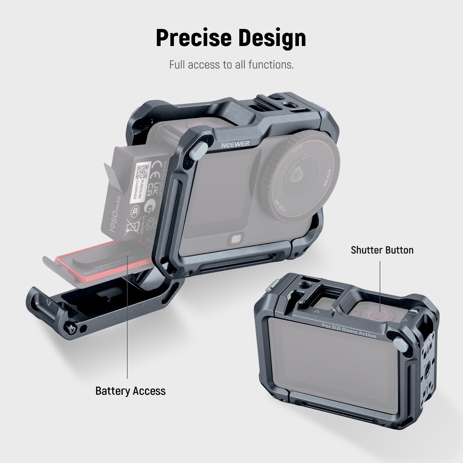 - Exclusive for Osmo Action 6- The osmo action 6 cage is fully compatible with DJI OSMO ACTION 6 action cameras for all around protection, with a quick lock latch for easy assembly, and several mounting ports for accessory expansion