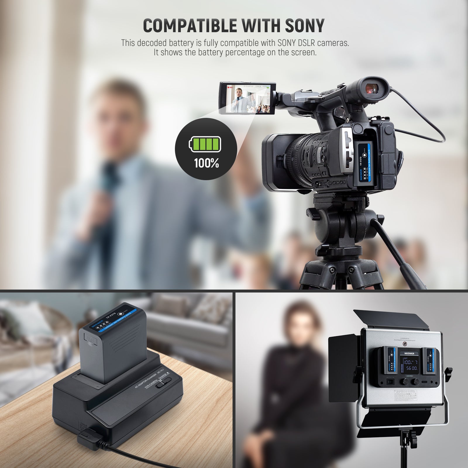 - Compatible with Various Equipment- A replacement for all NP-F series batteries, including NP-F550, NP-F570, NP-F750, NP-F770, NP-F960, NP-F970, NP-F975. Compatible with Sony CCD-RV CCD-SC CCD-TR CCD-TRT CCD-TRV CVX DSR DCR GV HDR HVL HVR MPK MVC PBD PLM series cameras and camcorders, NEEWER LED panel lights, ring lights, and field monitors