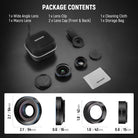 - 2 In 1 Smartphone Lens Kit- The kit includes: 1 x Wide Angle Lens, 1 x Macro Lens, 1 x Phone Lens Clamp, 1 x Cleaning Cloth, and 1 x Storage Case. Both lenses are made of HD optical glass (not resin) to minimize lens glare, reflections, and ghosting for superior clarity. The robust aluminum alloy construction offers excellent performance and helps take stunning shots outdoors
