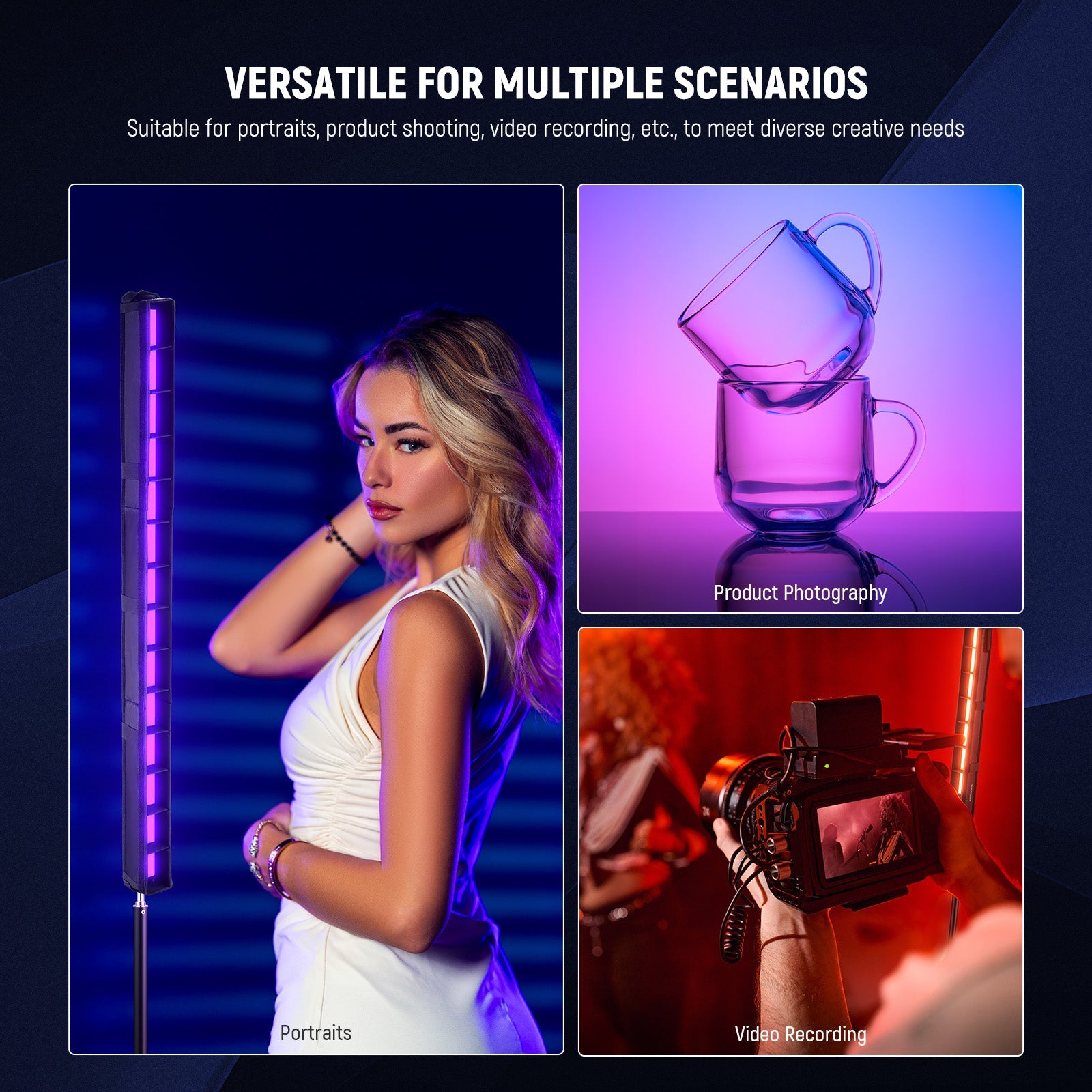 - Quick & Secure Setup with Touch Fasteners- Wrap the TL90C RGB LED tube light via touch fasteners on both sides to prevent slipping, and effortlessly attach the white diffuser using touch fasteners. The detachable design allows for convenient folding and storage with the included pouch