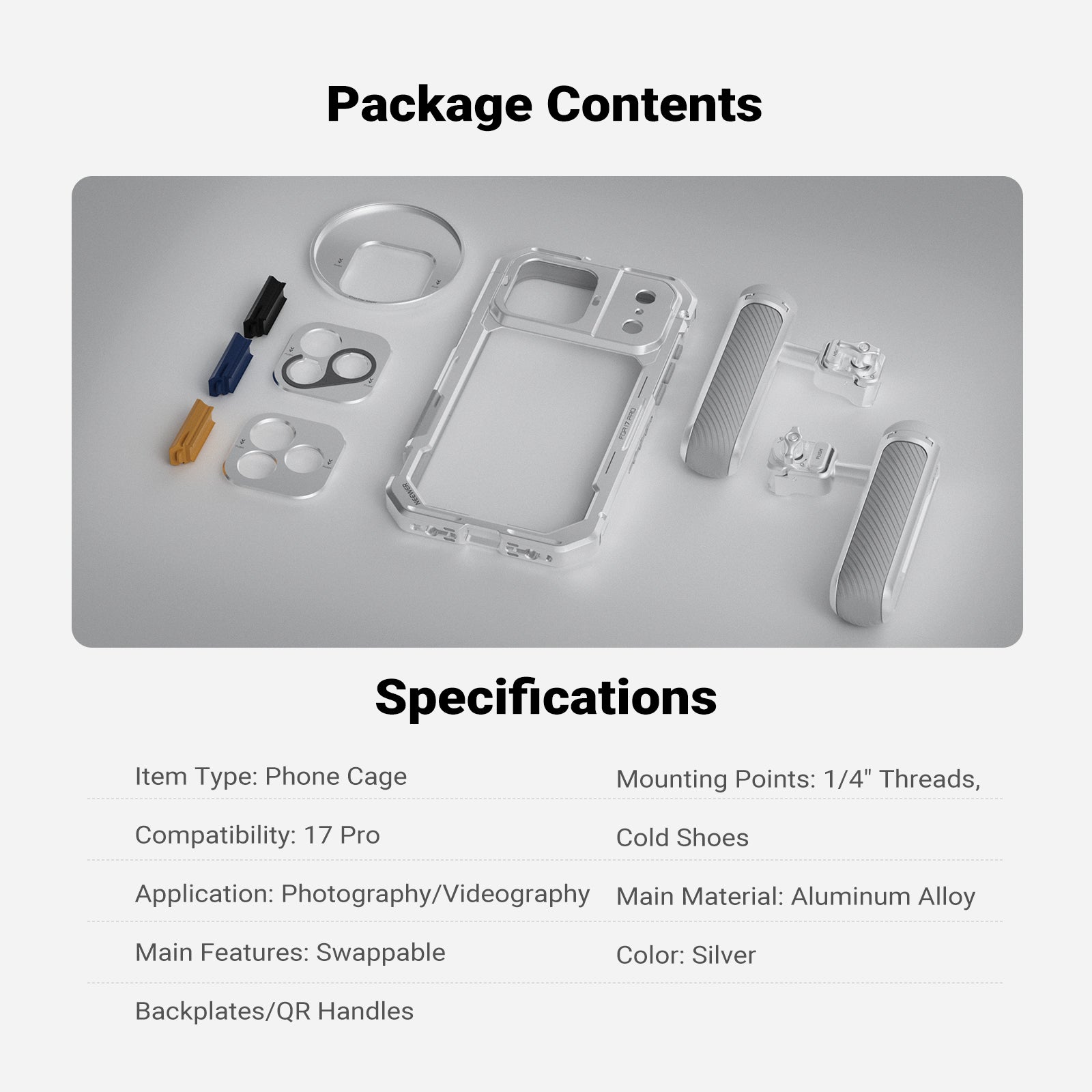 - Phone Cage for iPhone 17 Pro/Pro Max- Exclusively compatible with?iPhone 17 Pro/Pro Max, the strong aluminum alloy video rig with shockproof rubber lining protects your cell phone during outdoor use