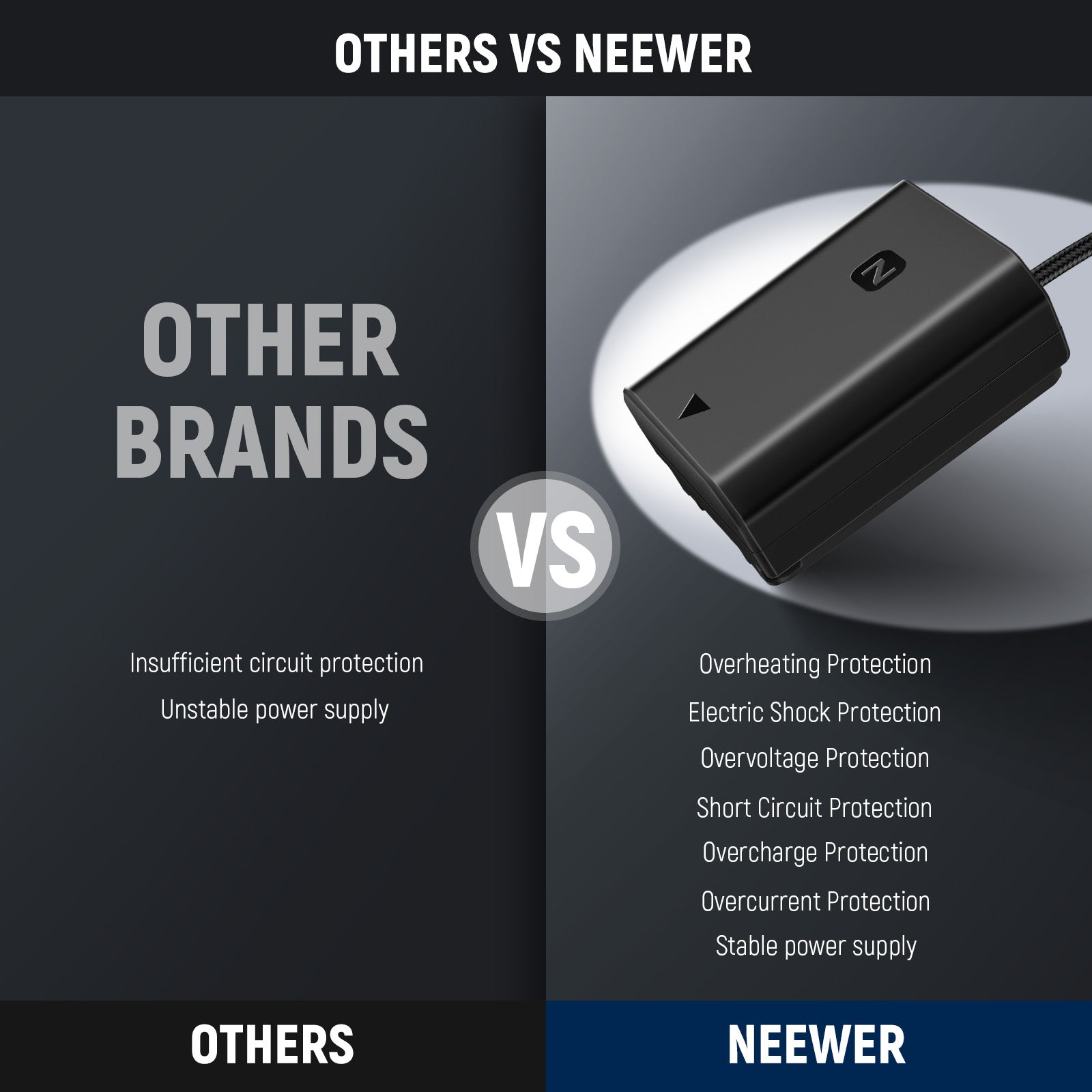 - Compatible Cameras- NEEWER USB C to NP-FZ100 dummy battery is a replacement for NP-FZ100 battery, compatible with Sony FX3 FX30 ZV-E1 A1 A6600 A6700 A7III A7IV A7C A7CII A7CR A7RIII A7RIV A7RV A7SIII A9 A9II cameras