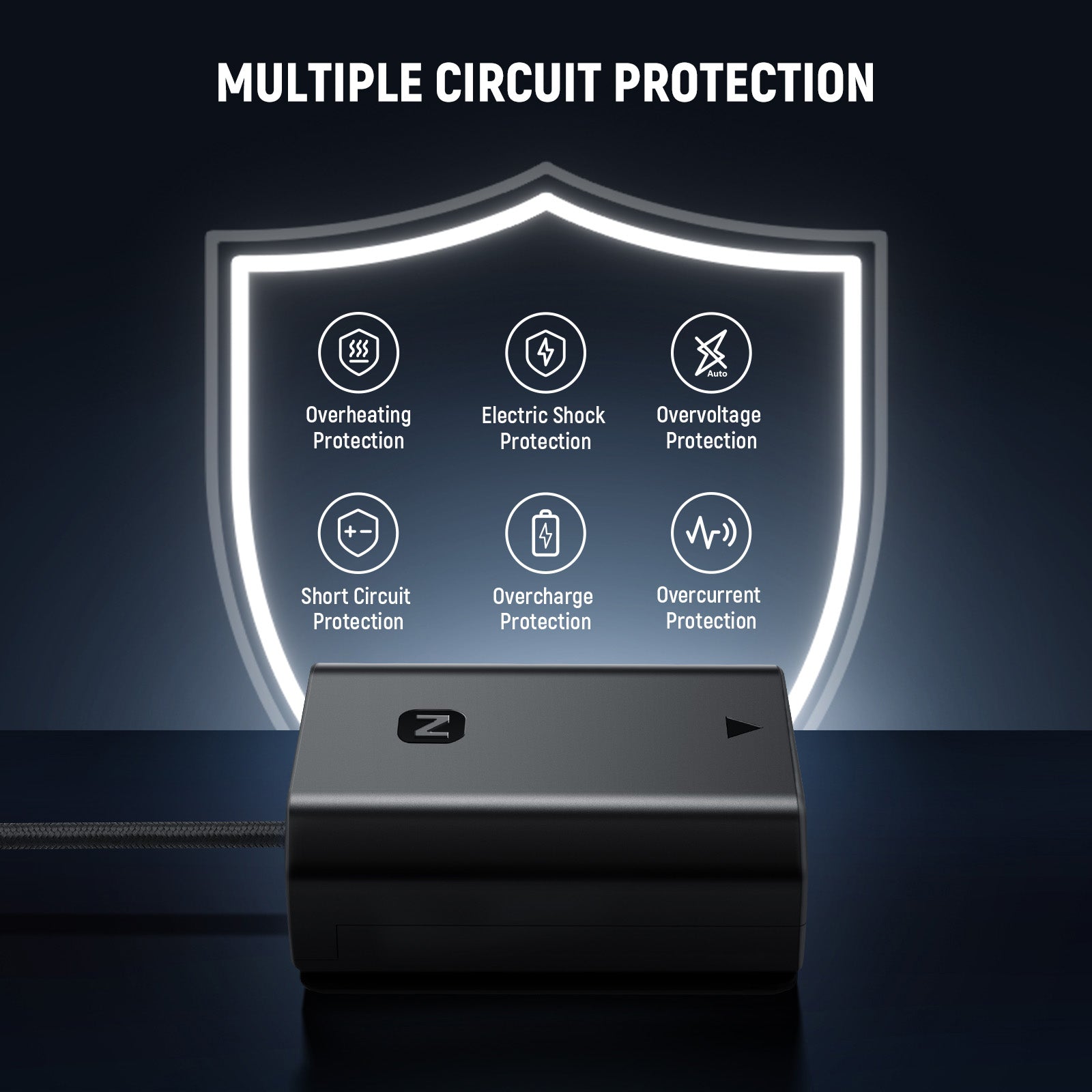 - Extended & Continuous Shooting- Compared to the original battery with limited runtime, this NP-FZ100 dummy battery delivers consistent power from USB C sources, ensuring extended recording sessions without interruptions. Simply insert the dummy battery into your camera, connect the USB C end to a power source, and you're ready to go