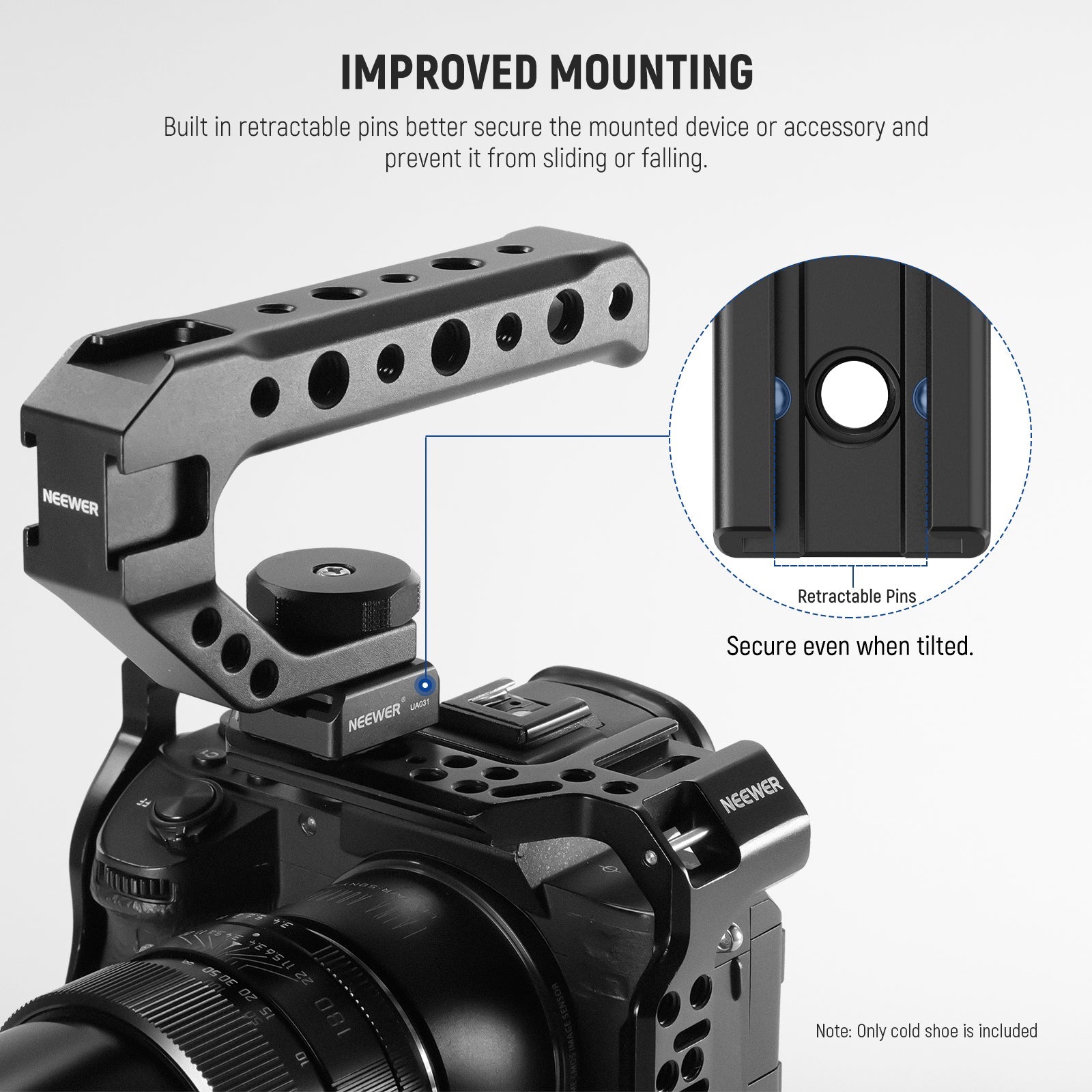 • Improved Non Slip Design- Equipped with a safety pin and two cross-patterned silicone pads at the bottom to add friction between the cold shoe mount and your camera, and prevent unwanted wobbling while shooting