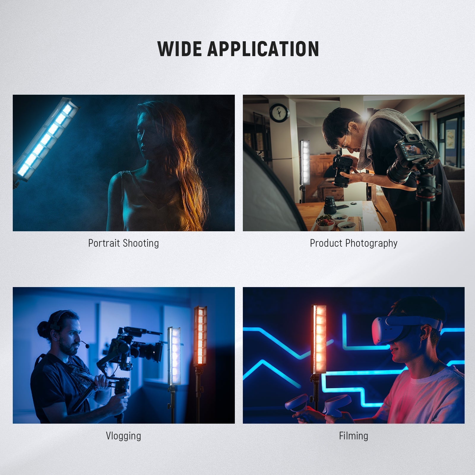- Detachable Diffusion Panel- A detachable white diffusion panel that attaches to the stick light grid via touch fasteners can soften the light source for even light distribution