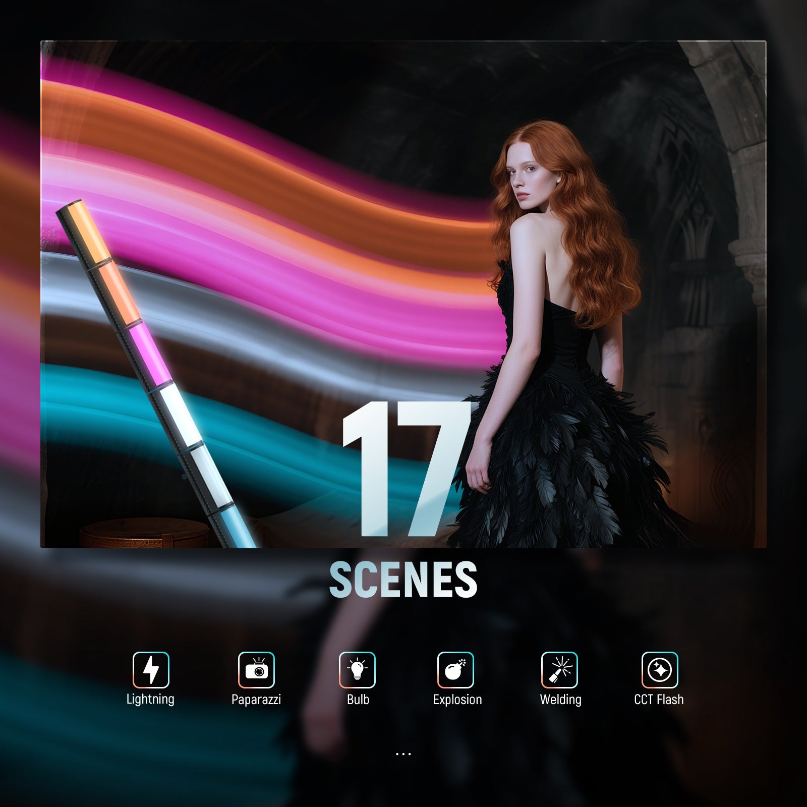 - Creative Lighting with CCT/HSI/FX Modes- This film light stick features precise light adjustments for custom lighting scenes. Adjust color temperature from 2500K to 8500K in CCT mode and use the built in GM adjustment for color calibration. HSI mode fine tunes 360° color wheel, 0-100% brightness, and 0-100 saturation. Explore creativity with the 17 scene effects like cop/police car, lightning, fireworks, etc. The OLED display and physical buttons for intuitive operation