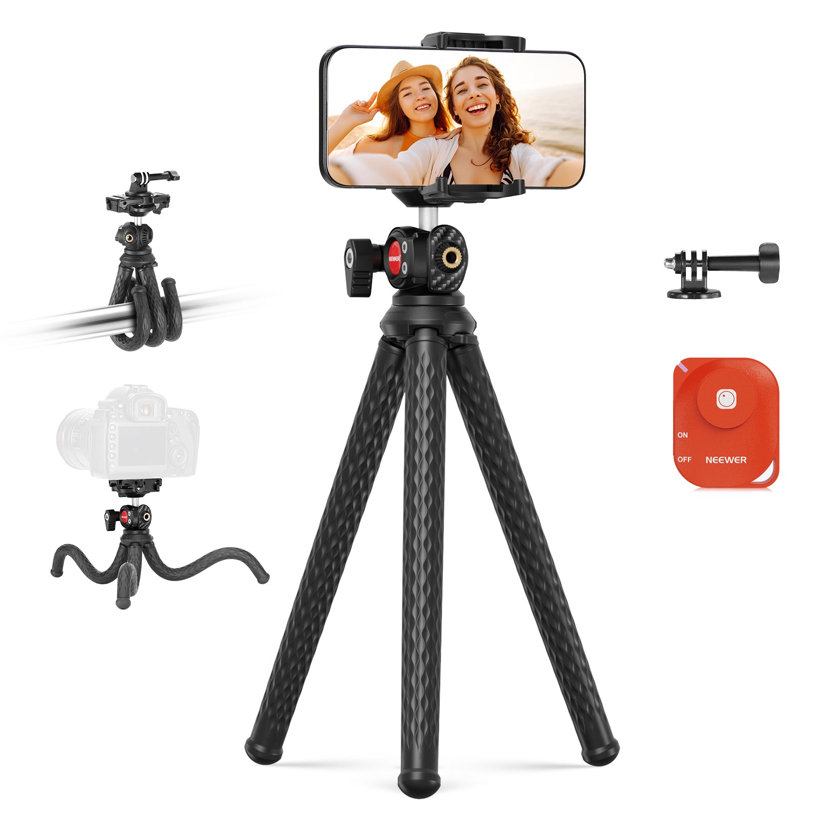 - Strong Bendable Flexible Tripod for Camera Vlogging- With bendable legs, NEEWER TP34 small octopus vlogging tripod stand with a Bluetooth remote shutter wraps around lampposts, fence posts, tree limbs, bike handlebars and stabilizes your DSLR camera, action camera, smartphone, or tablet up to 4.4lb (2kg). Also functions as a tabletop tripod desk stand or a handgrip selfie stick for vlogging, live streaming, video recording, and filmmaking, It can withstand up to 1,000 bends under normal usage