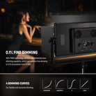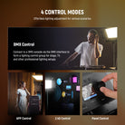 - 3 Lighting Modes- The AP100B offers 3 lighting modes: CCT, FX, and SOURCE. In CCT mode, you can adjust the color temperature from 2500K to 8500K (in 100K increments). FX mode has 13 scene effects, while SOURCE mode supports 14 source matching. With PWM technology, AP100B filming light allows precise dimming from 0 to 100% in 0.1% increments. It also provides 4 dimming curves (exponential, logarithmic, S, linear) for varied lighting needs