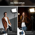 - AC Adapter or V Mount Battery Powered- The portable bi color panel light gear provides dual power options for indoor and outdoor use. Indoors, use the included 20V AC adapter and power cord accessories. Outdoors, you can power it using a V mount battery (14.8-26V) and D tap to 4 pin cable (battery & D tap cable sold separately), ensuring uninterrupted photography and videography lighting. The DC port with a locking design prevents accidental disconnection during use