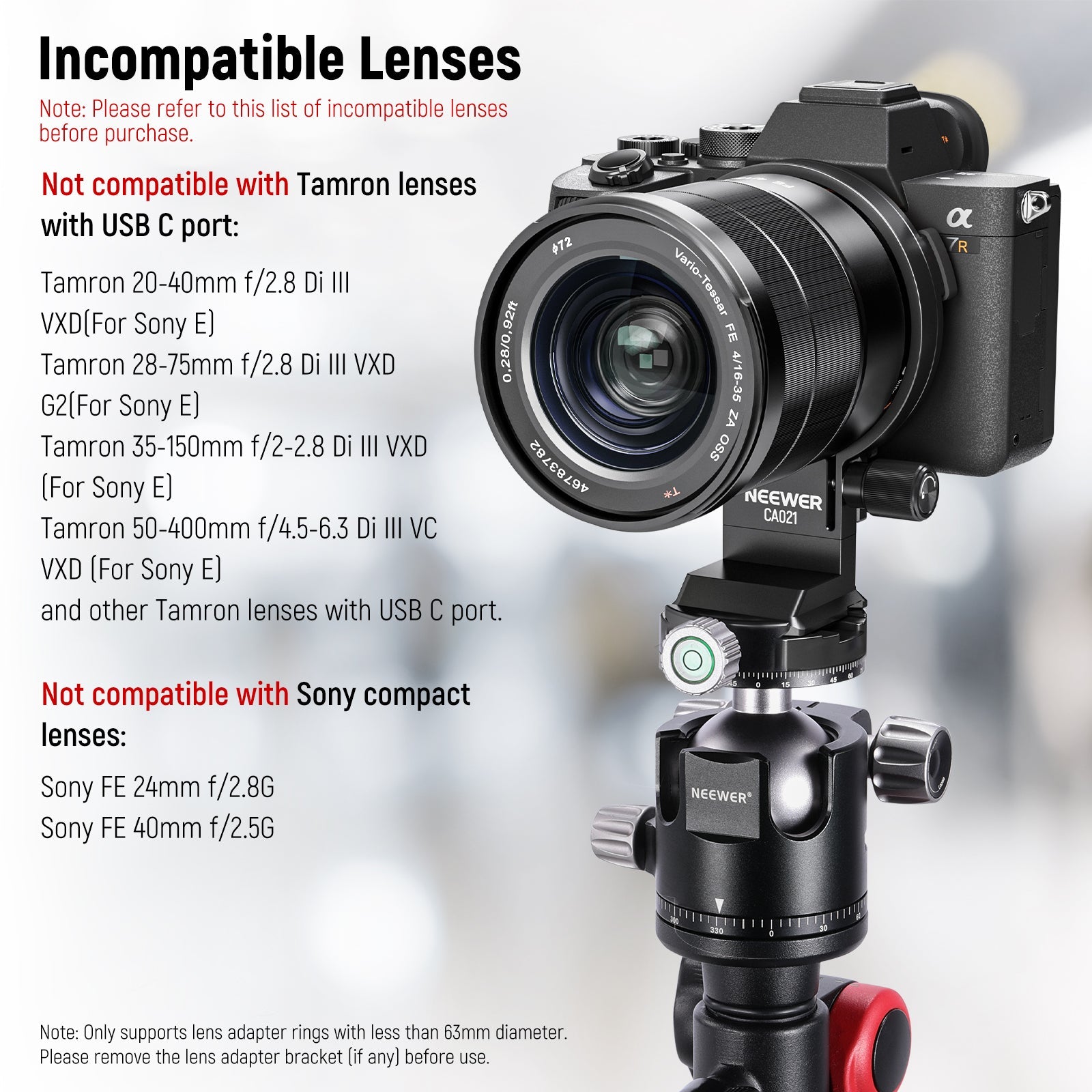 2. Only support lens adapter rings with less than 72mm diameter.