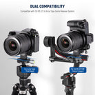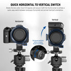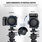 • Quick Horizontal to Vertical Switch- The camera rotating plate rotates the camera lens collar 90 degrees and achieves a quick, easy switch between landscape (horizontal) and portrait (vertical) orientations on a tripod or gimbal stabilizer without adjusting the lens's optical axis. Note: Only supports lens adapter rings with less than 72mm diameter. For safety, please remove the lens before installation/removal