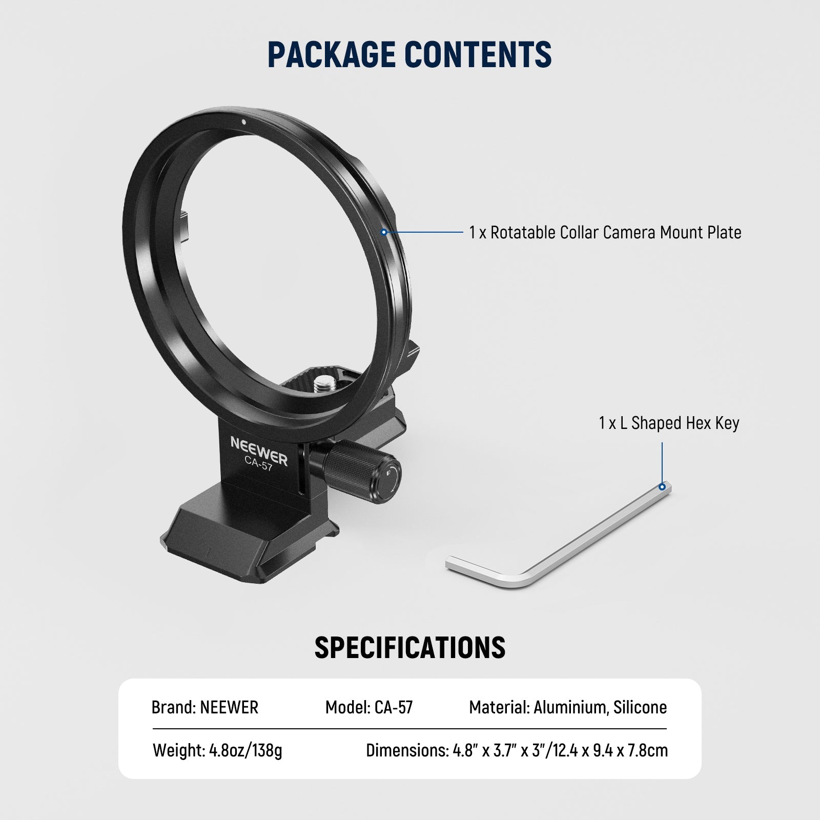 • 1 x Collar Mount Plate for Camera Lens