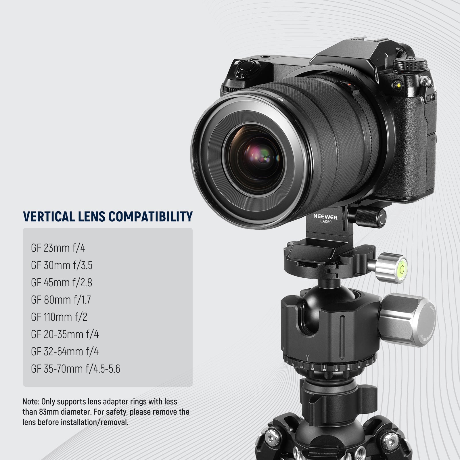 • Flexible Angles & Improved Balance- This NEEWER CA059 rotatable collar camera mounting plate enables seamless quick horizontal to vertical shots without compromising stability and enhances balance when using telephoto or other heavy lenses. Compatible with Fujifilm GFX 100S / GFX 50S II/ GFX100 II medium format cameras, compatible with GF 20-35mm f/4 110mm f/2 23mm f/4 35-70mm f/4.5-5.6 45mm f/2.8 30mm f/3.5 80mm f/1.7 32-64mm f/4 camera lenses