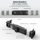 - Quick Release & Fine Tuning Design- Simply release the quick release knob and adjust the width accordingly. The fine tuning thumb screw allows for further adjustments and ensures a secure grip. The spring less design prevents any potential damage to your device, with the locking mechanism being both stable and reliable