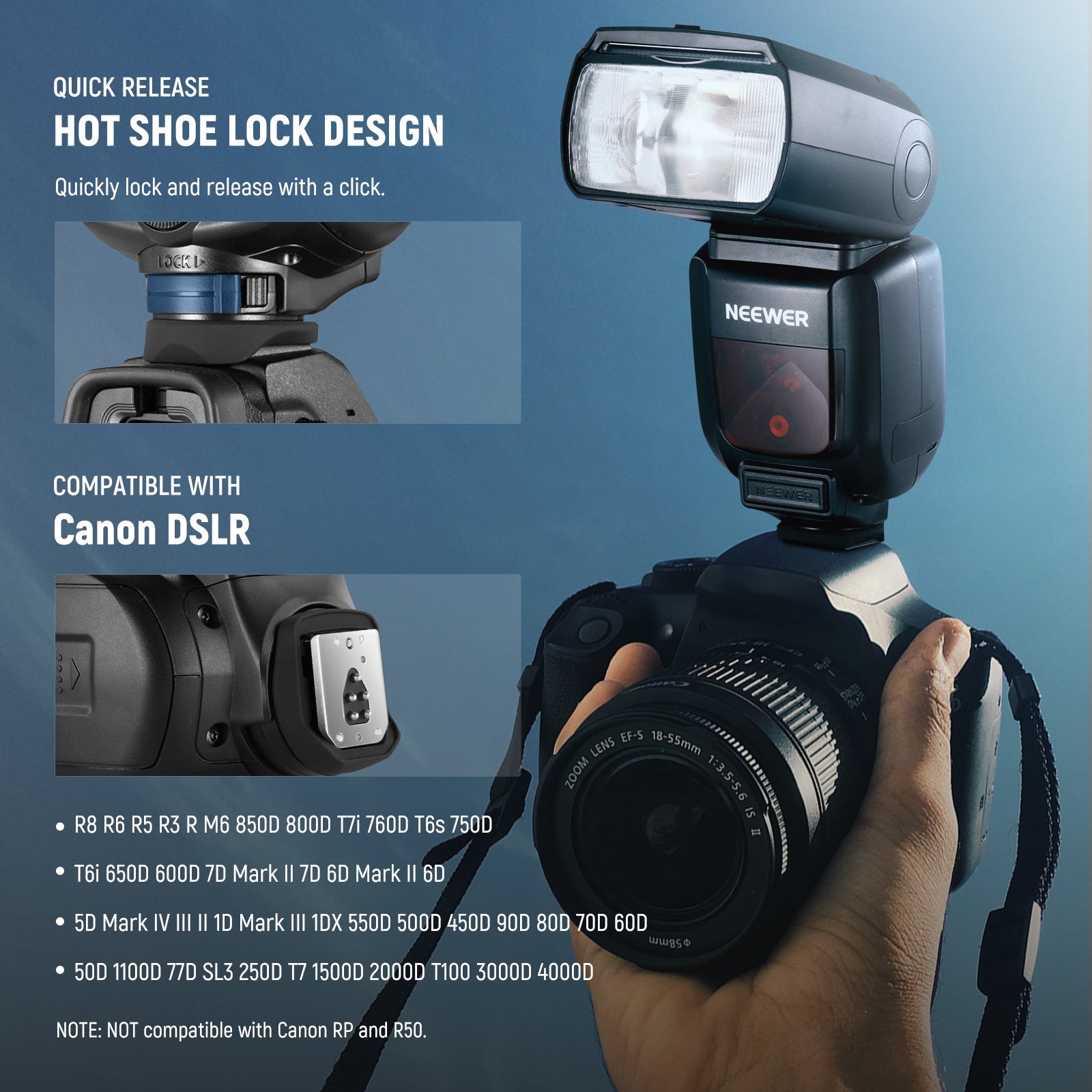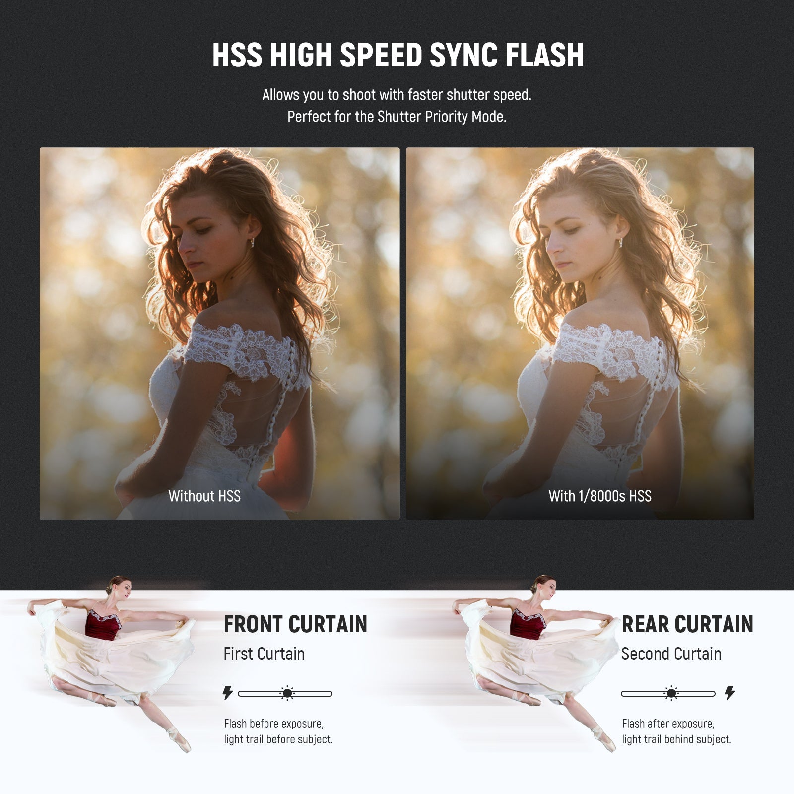 - Flexible Flash Angles & Effects- The flash head supports -7°-120° tilts and 360° rotation for flexible flash bounces and reflections. The included reflector and wide angle diffusion panel can make eyes sparkle and broaden the flash coverage for a soft and natural result. The HD LCD screen enables customization, standby, autofocus assist beam, and backlight for convenient operation
