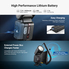 - Burst Performance: 70-100 Flashes (at Full Power)