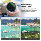 - Minimal Glare, Vibrant Color- The CPL (circular polarizer) filter eliminates reflections and glare from glass, water, and other nonmetallic surfaces while enhancing saturation and contrast