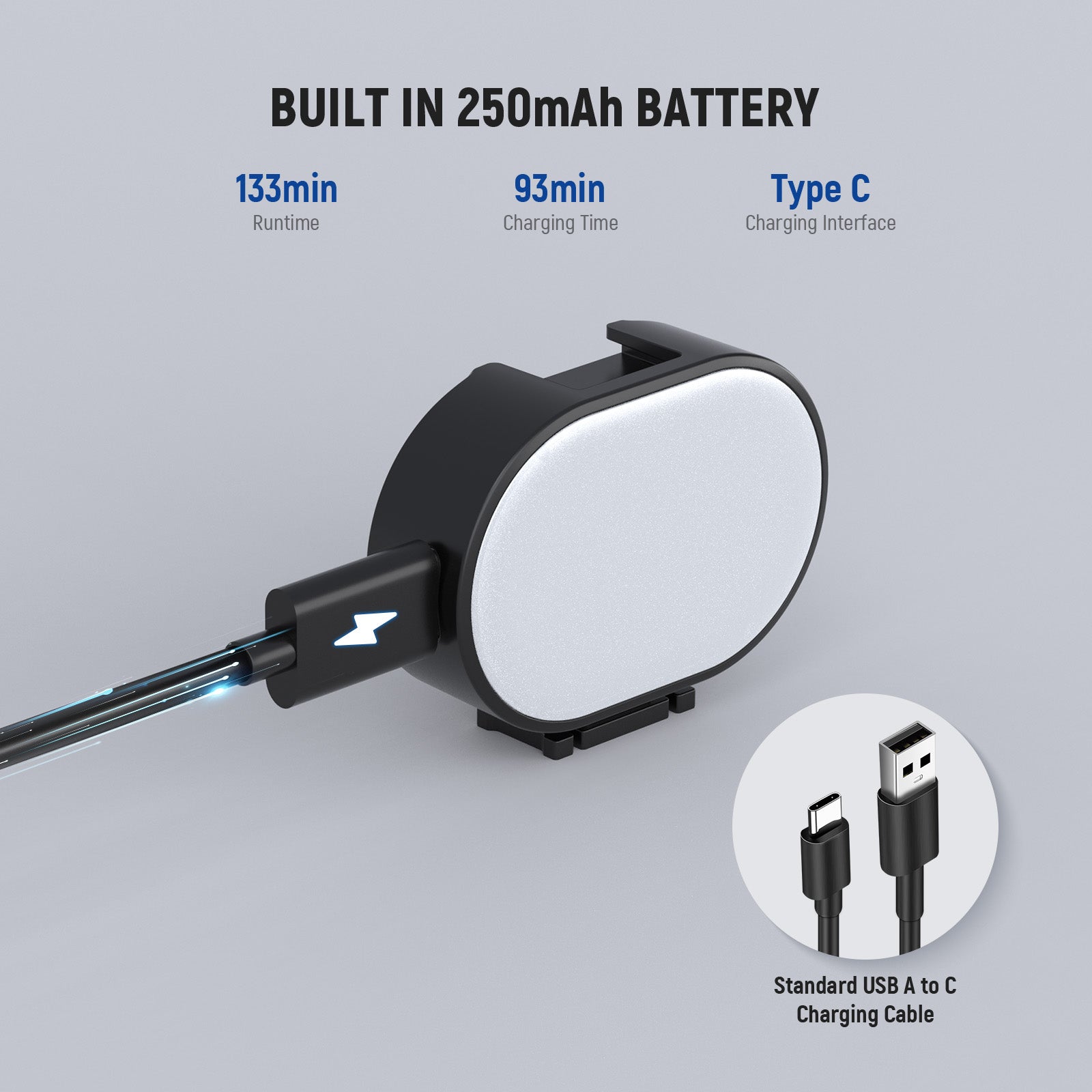• 133min Long Runtime & Quick USB C Charging- The built in 250mAh rechargeable battery provides continuous lighting for up to 2 hours and 13 minutes at full brightness on a full charge, fully recharging in 93min via a portable charger, laptop, car charger, or any other USB power source using the included USB C charging cable. Perfect light for outdoor content creation, without the hassle of power issues on the go