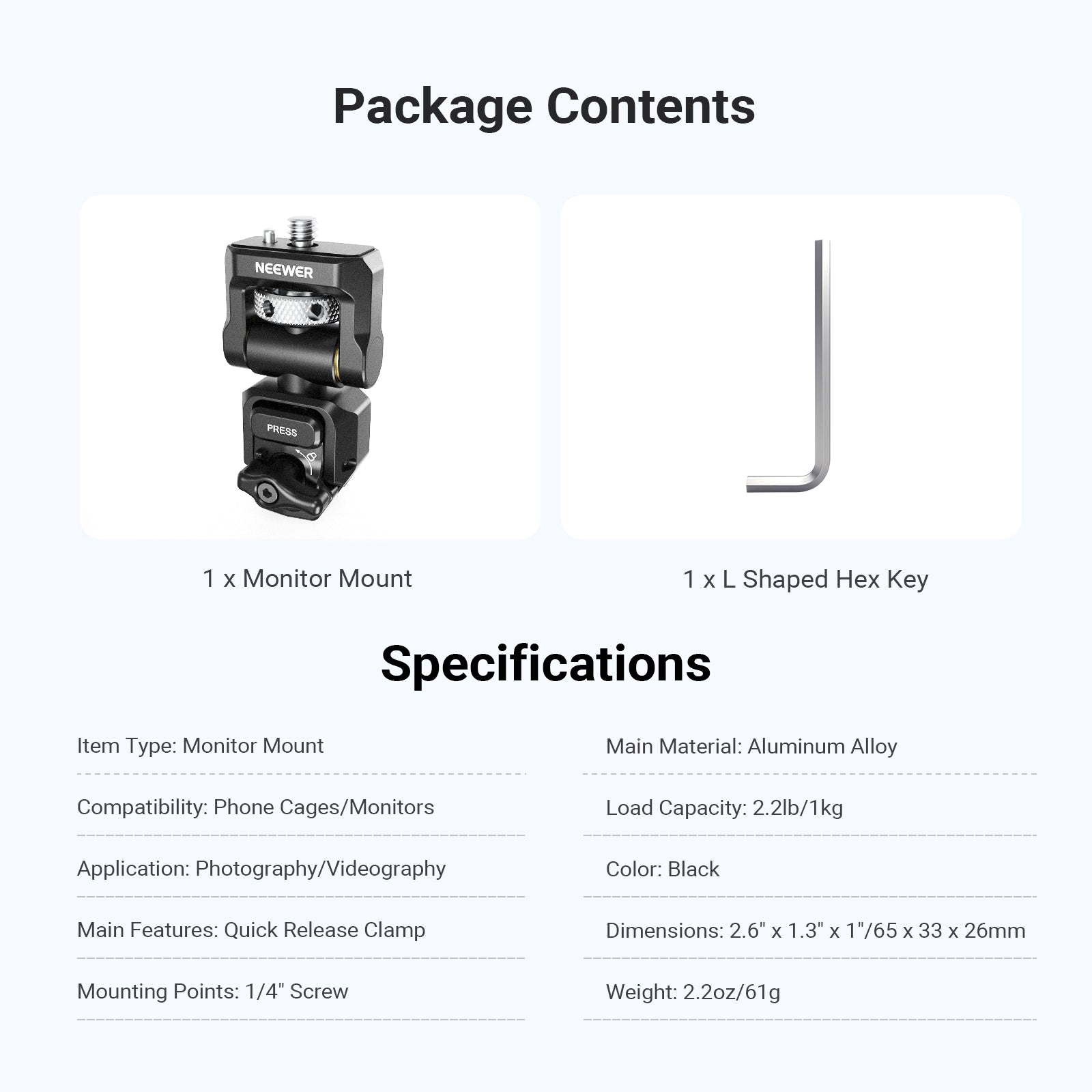 NEEWER PA127 Quick Release Monitor Mount for Phone Cage