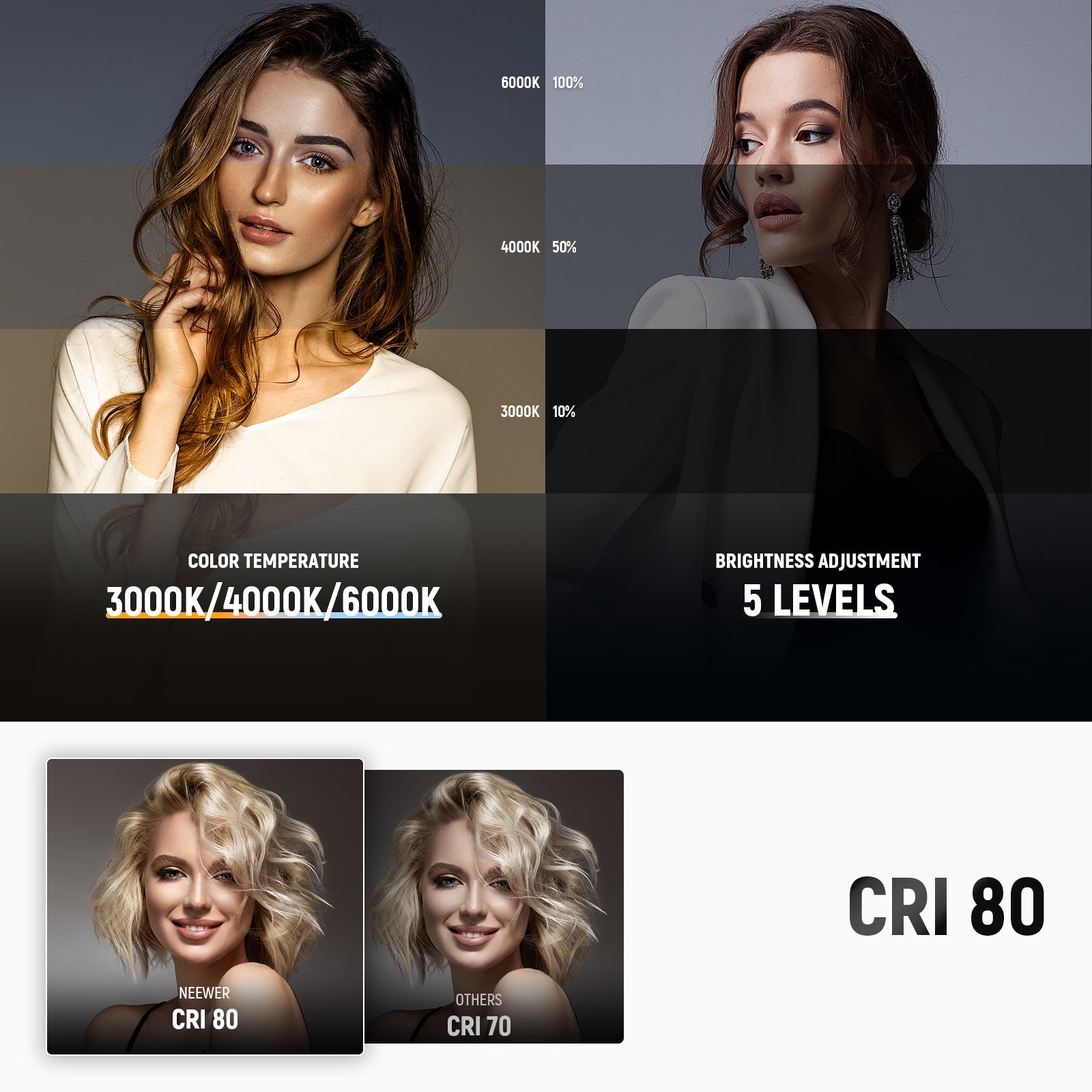 - Color Temperatures: 3000K/4000K/6000K (±300K)