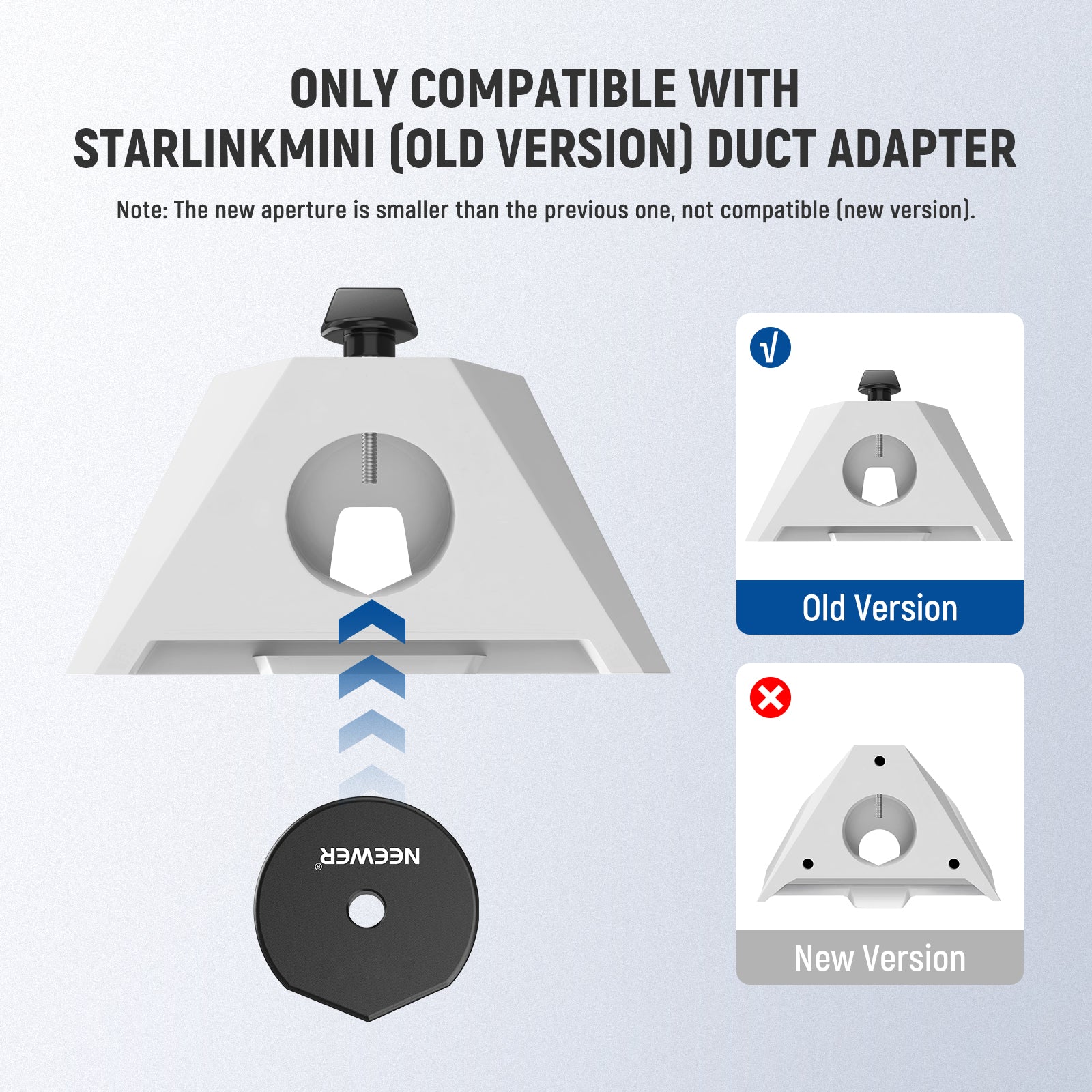 - Exclusive Compatibility- NEEWER NA02 tripod mount adapter is exclusively compatible with Starlink Mini satellite receiver. Designed with precision, it serves as a reliable conversion adapter to seamlessly fit into the original pipe mount.Note: NOT compatible with the newest pipe adapter mount. Note: NOT compatible with the Pipe Mount Released after April 2025.