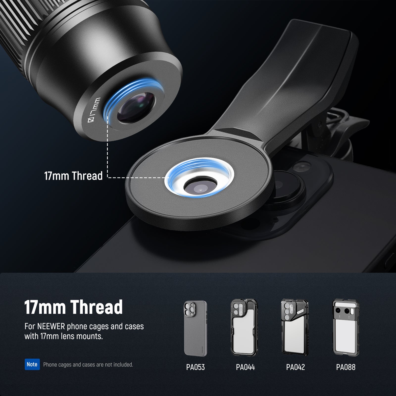 NEEWER phone lenses are crafted with a durable aluminum alloy frame that resists rust and scratches. These lenses ensure accurate color reproduction for sharp and vibrant videos and photographs. Our collection includes macro probe lenses, wide-angle phone lenses, and more. Choose a professional phone lens to elevate your mobile photography.