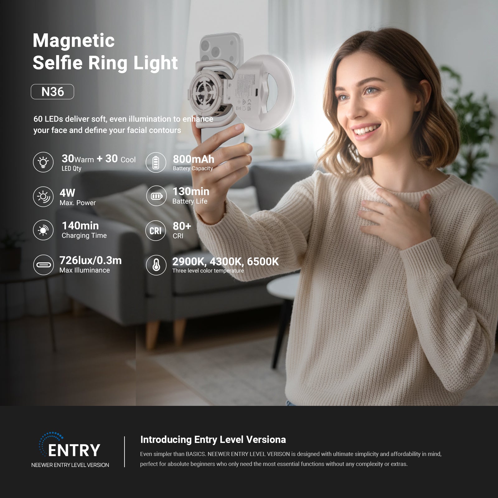 NEEWER ENTRY LEVEL VERSION N35/N36 Magnetic Selfie Ring Light