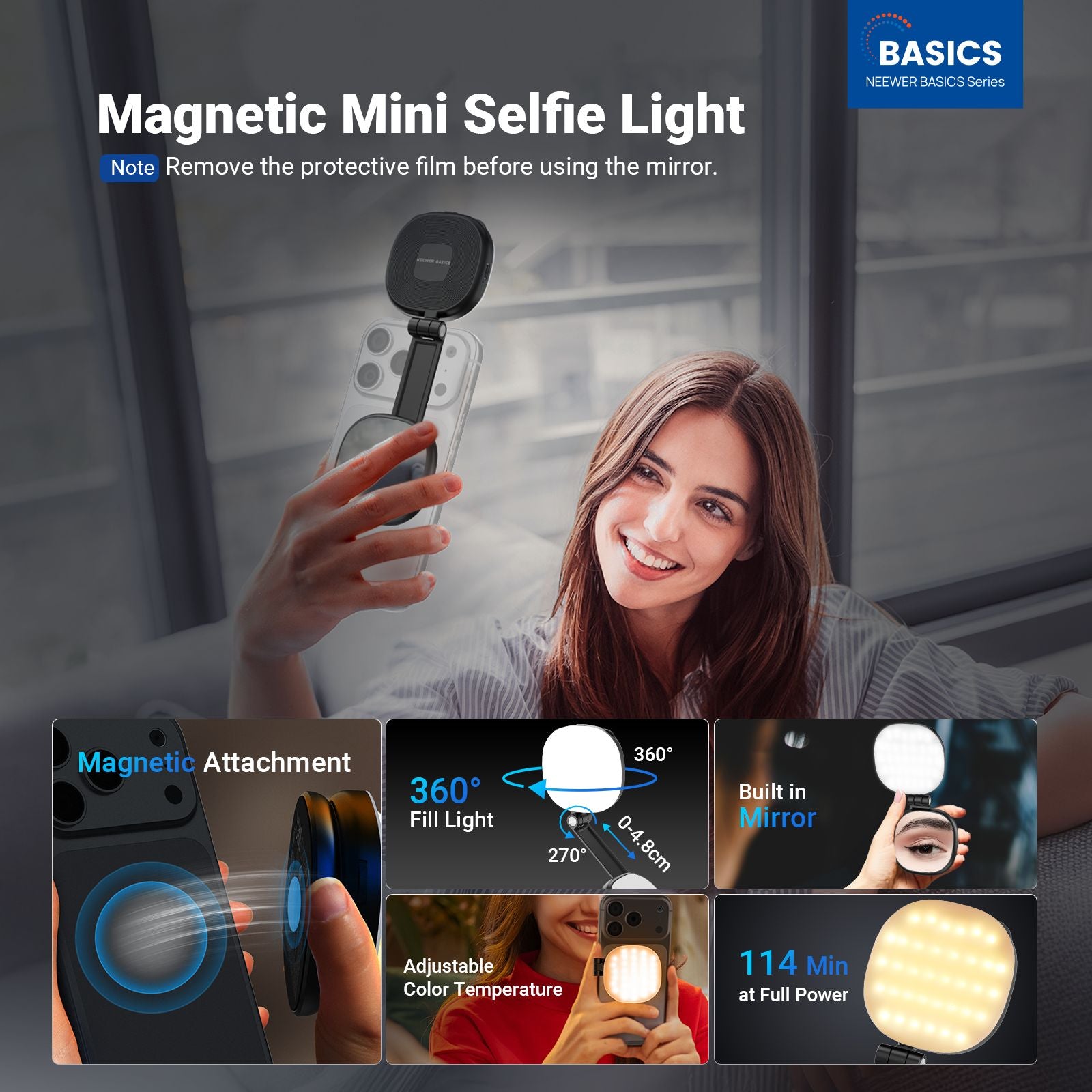 NEEWER BASICS BL48B Rechargeable Magnetic Selfie Light For MagSafe