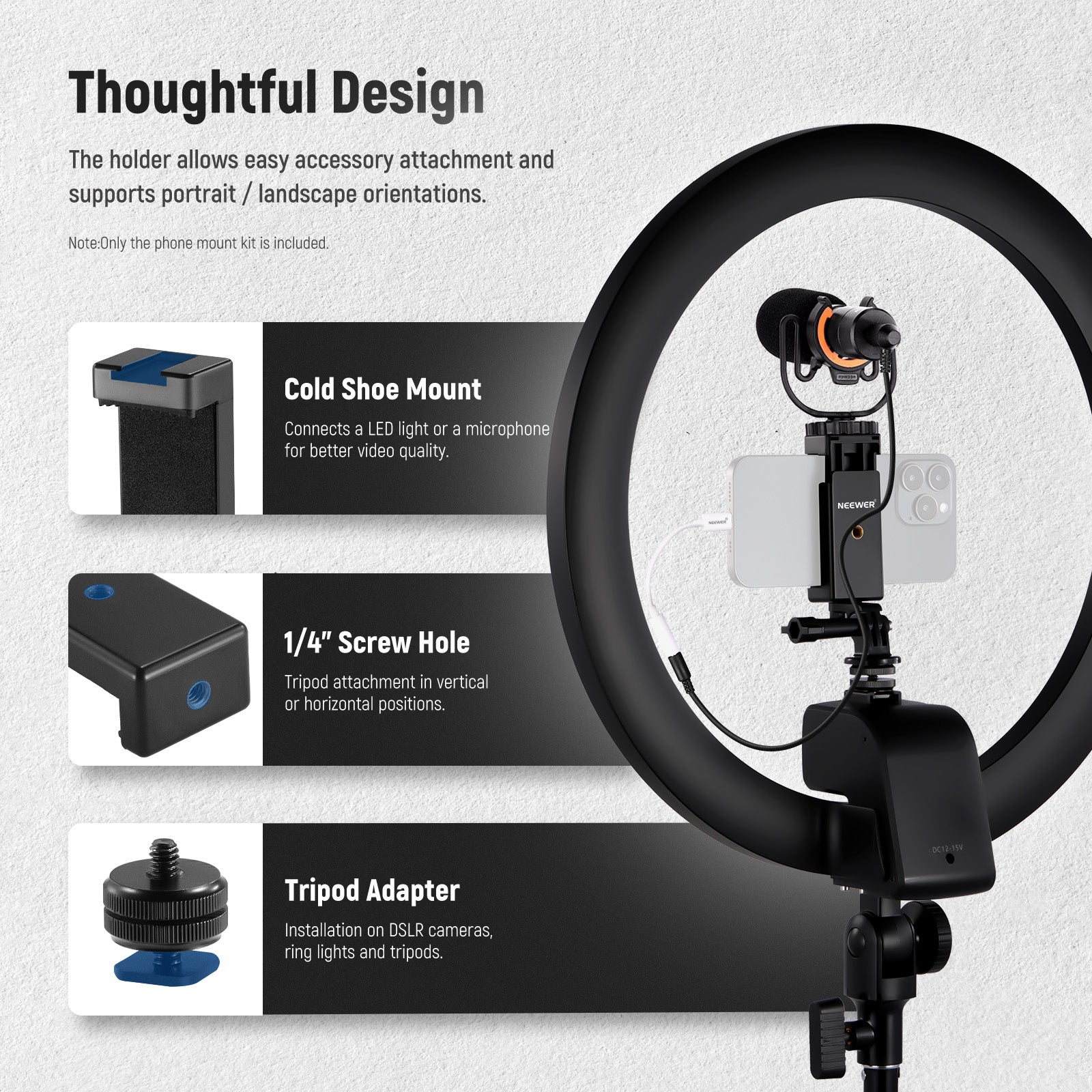 NEEWER phone rigs are designed to enhance your mobile videography. Our collection includes phone tripod mounts, phone cages, smartphone gimbals, and more. Compatible with a wide range of phones, including iPhone, Samsung, and other brands, you can easily find the phone rig that best suits your needs.