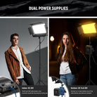 - Dual Power Options- The portable AP100C light includes an AC 20V power adapter and power cord for indoor photography lighting. For outdoor use, you can power it using a V mount battery (14.8-26V) and D tap to 4 pin cable (battery & D tap cable sold separately) for uninterrupted use. The DC XLR power cable with a locking design prevents accidental disconnection during use