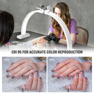 • Foldable 29" LED Arc Lamp- This dimmable, bi color 29" desktop LED manicure arm lamp for table offers a 40W power output, a 3000K-6500K color temperature range, 3400lux/0.5m max illuminance, and CRI 95 for accurate color reproduction. This desk half moon nail tech fill light’s foldable design allows for easy storage and transportation, perfect for makeup artists and content creators on the go
