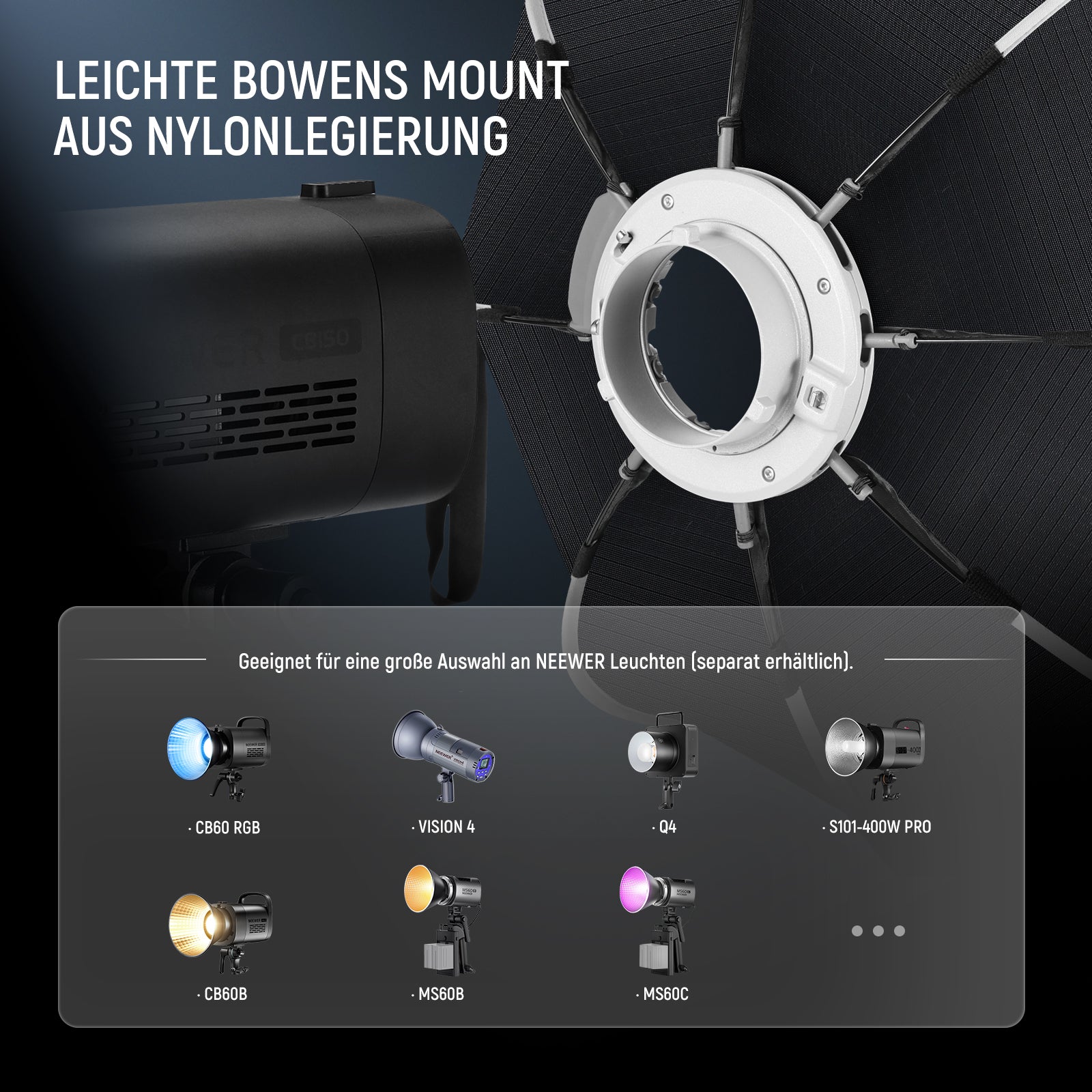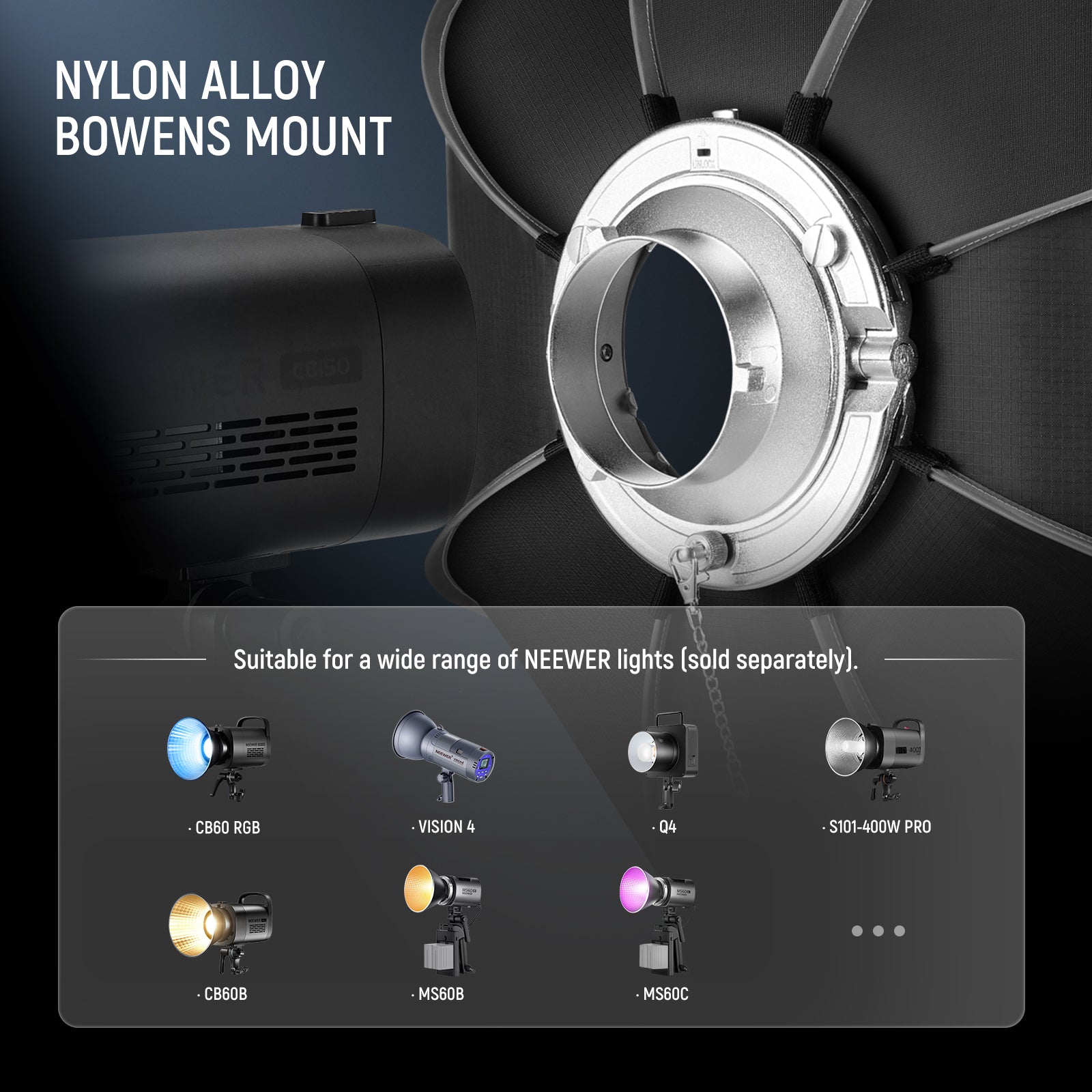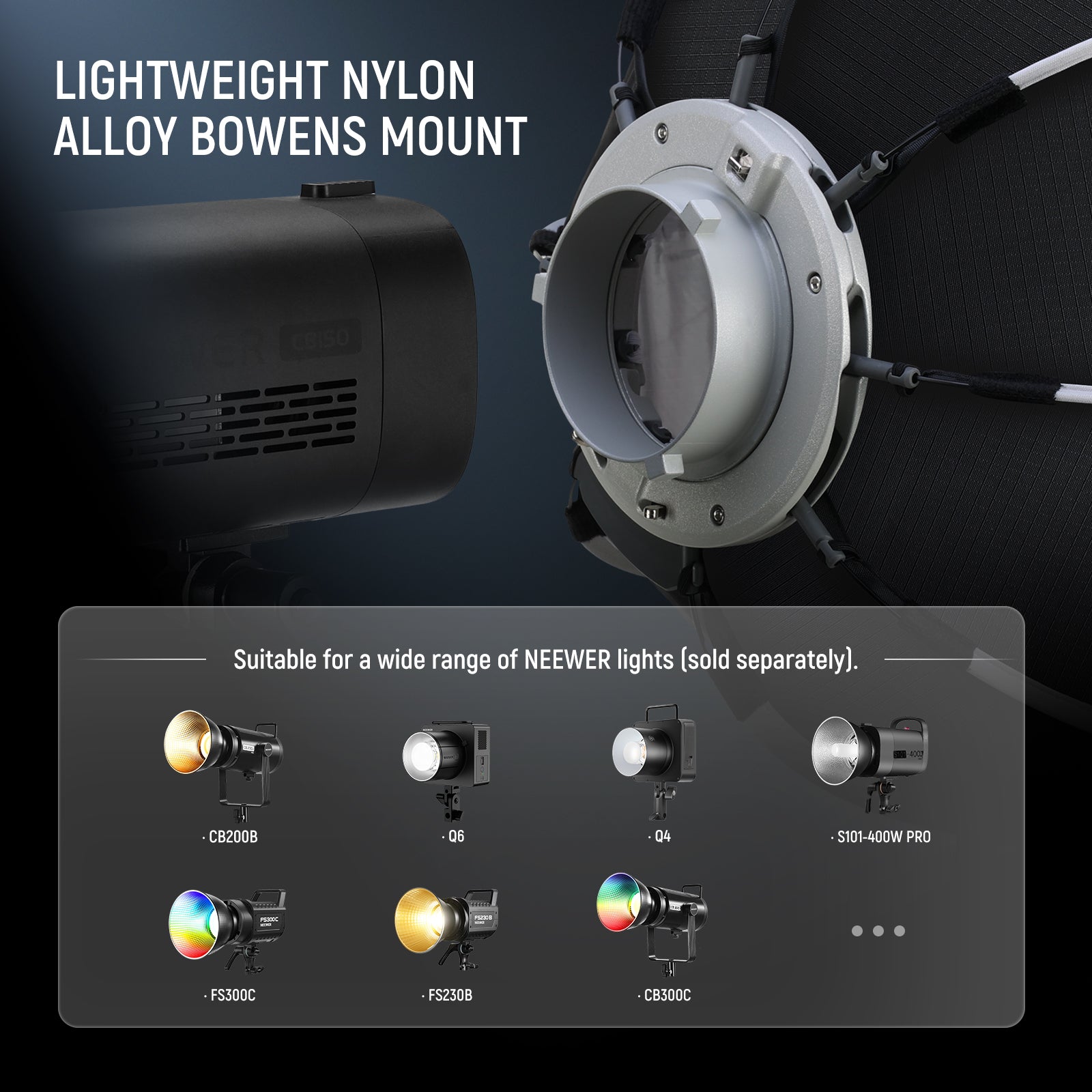 - Compatibility: Lights with Bowens mount