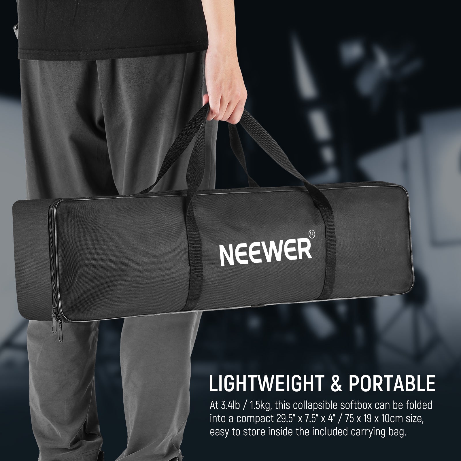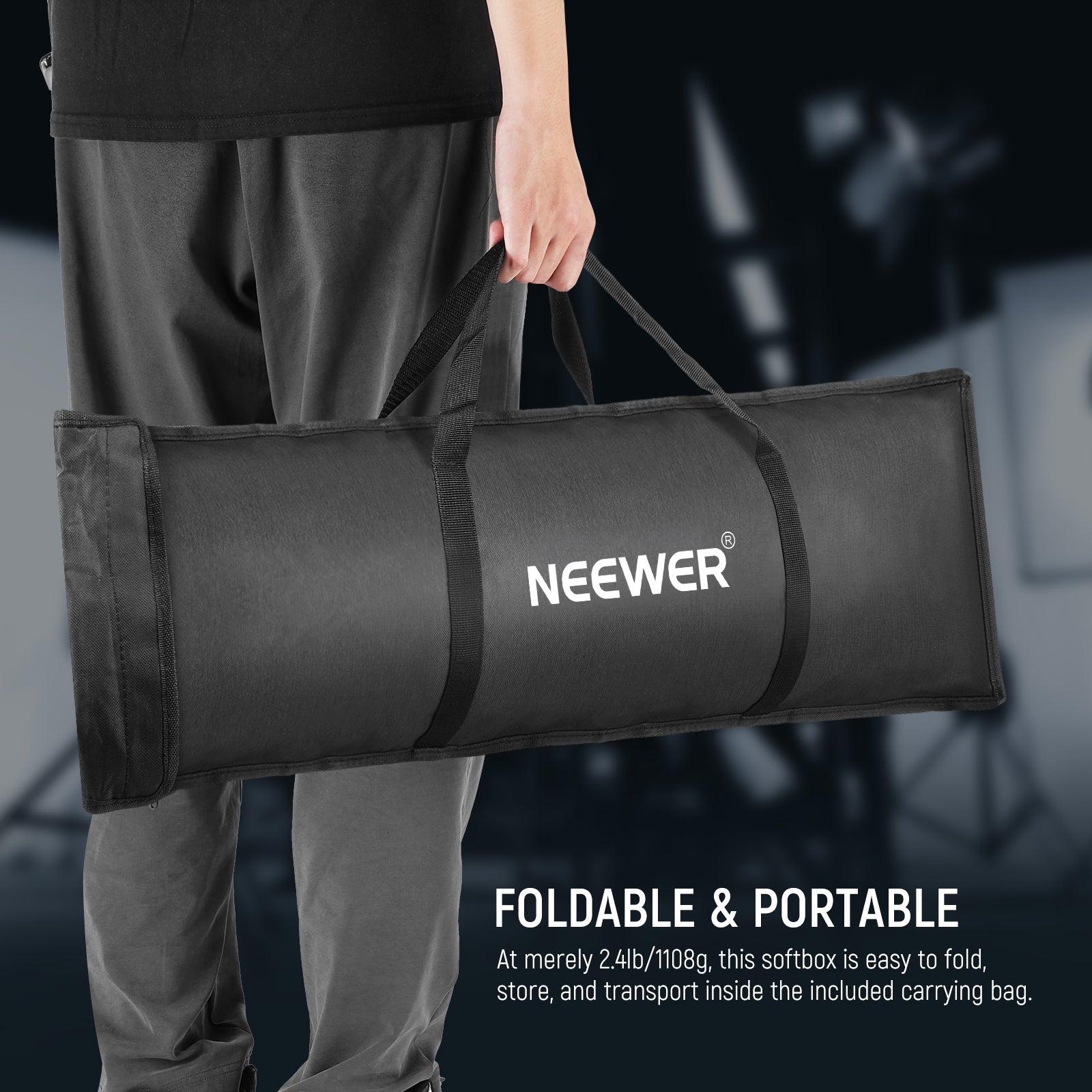 - Foldable & Portable- At merely 2.4lb/1108g, this softbox is easy to fold, store, and transport inside the included carrying bag. Perfect for portraits, product photography, beauty & fashion shoots, weddings, corporate headshots, and other photography styles