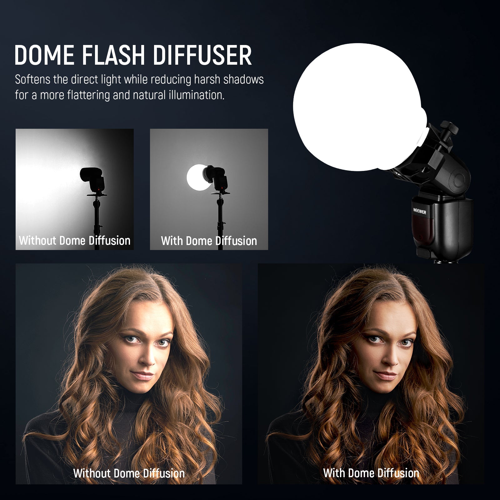 - Soften & Natural Diffusion- Crafted with high quality silicone, this diffusion dome provides just the right amount of transmittance that scatters and softens the direct and harsh light while reducing harsh shadows for a more flattering and natural illumination