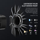 - Standard Bowens Mount- Seamlessly compatible with Aputure 120d Godox sl60w NEEWER CB200B CB60 CB60B RGB CB60 MS150B MS60B MS60C Vision 4 S101-300WPRO/400W PRO and other studio strobe lights and continuous LED video lights with Bowens mount