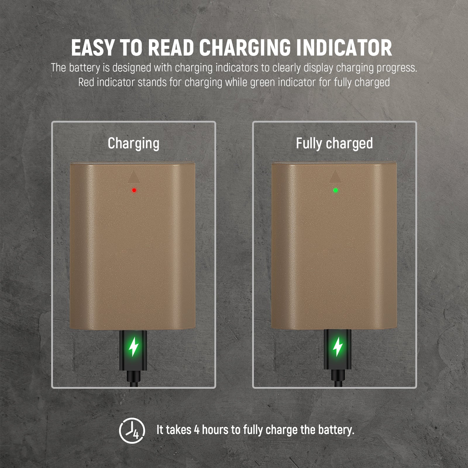 - Easy to Read Charging indicator- The battery is designed with charging indicators to clearly display charging progress. Red indicator stands for charging while green indicator for fully charged