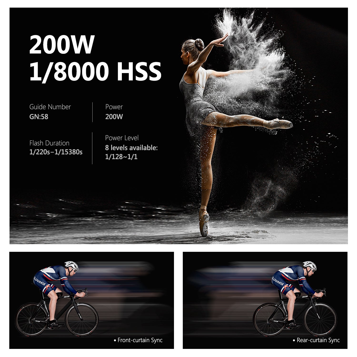 - Flash Durations: 1/220s to 1/15380s