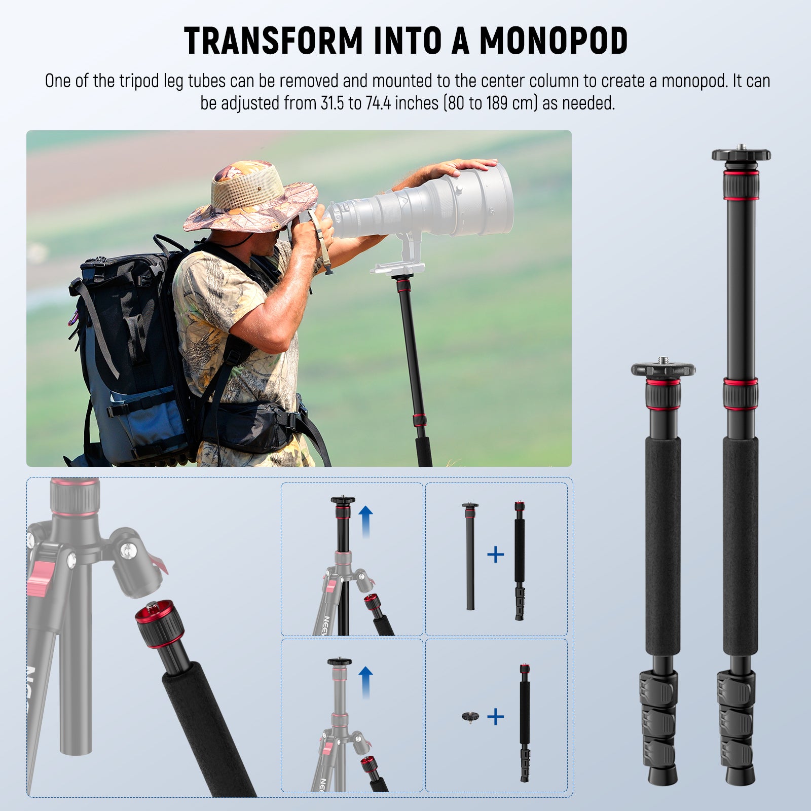 - Transform into a Monopod- One of the tripod leg tubes can be quickly disassembled and connected with the central axis to transform into a monopod, great for capturing quick, moving situations, versatile as a trekking pole during your hikes. The height of the monopod is adjustable from 31.5"/80 cm to 74.4"/189 cm. Ideal tri pod stand with phone holder attachment compatible with iPhone for content creator essential photography videography accessories, influencer must have camera creation gear