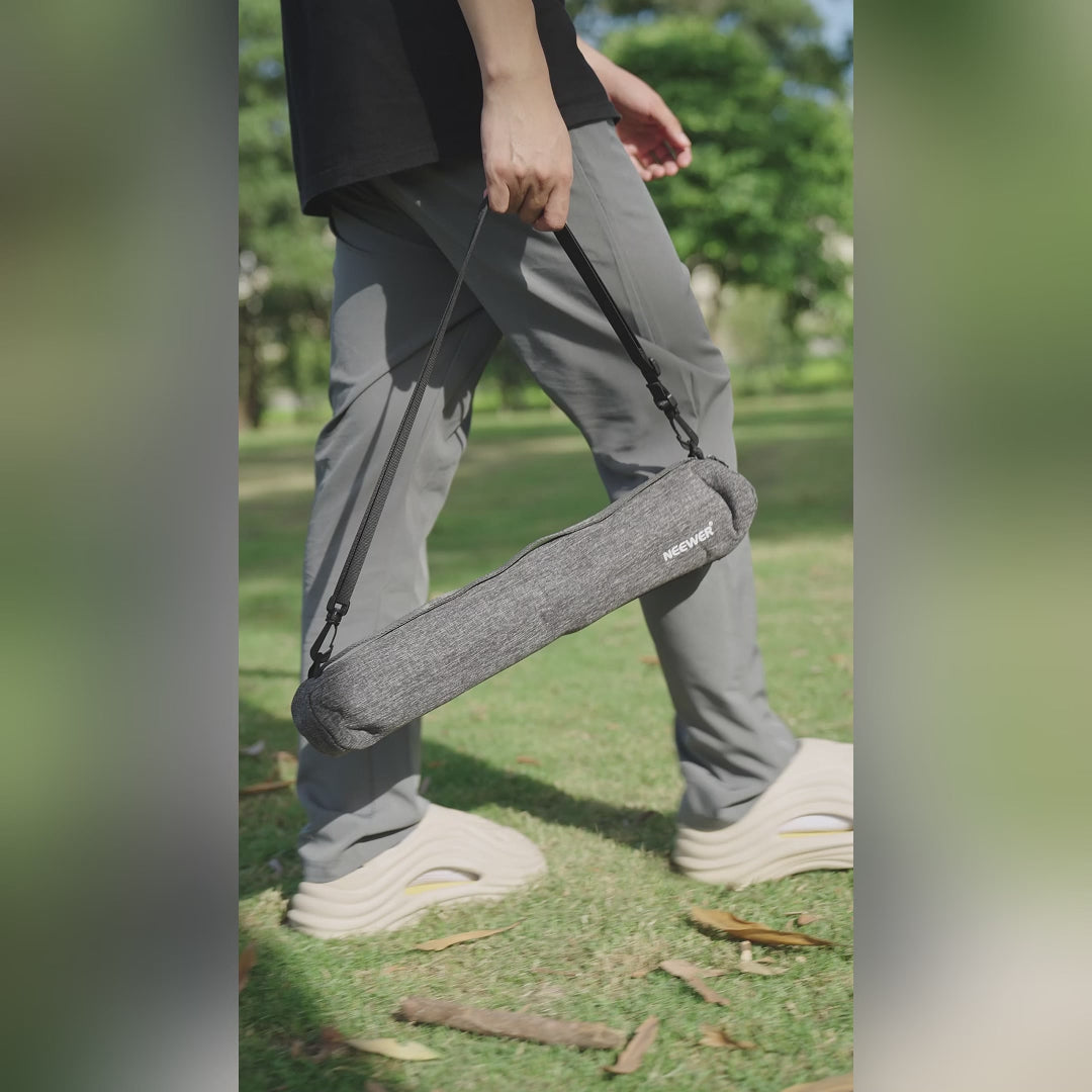- 100% Carbon Fiber Compact Travel Tripod- The LT34 from NEEWER LITETRIP Series portable tripods, is a 2.9lb/1.32kg lightweight carbon fiber video tri pod for phone and camera with a 1"/25mm tube for stability and a 22lb/10kg load capacity . When folded, it's just 18.3"x2.6"/46.5x6.5cm, fitting easily in the carry bag. It also has a hook for counterweights on the center axis, ideal for outdoor shooting like landscape, nature, wildlife, and architecture photography