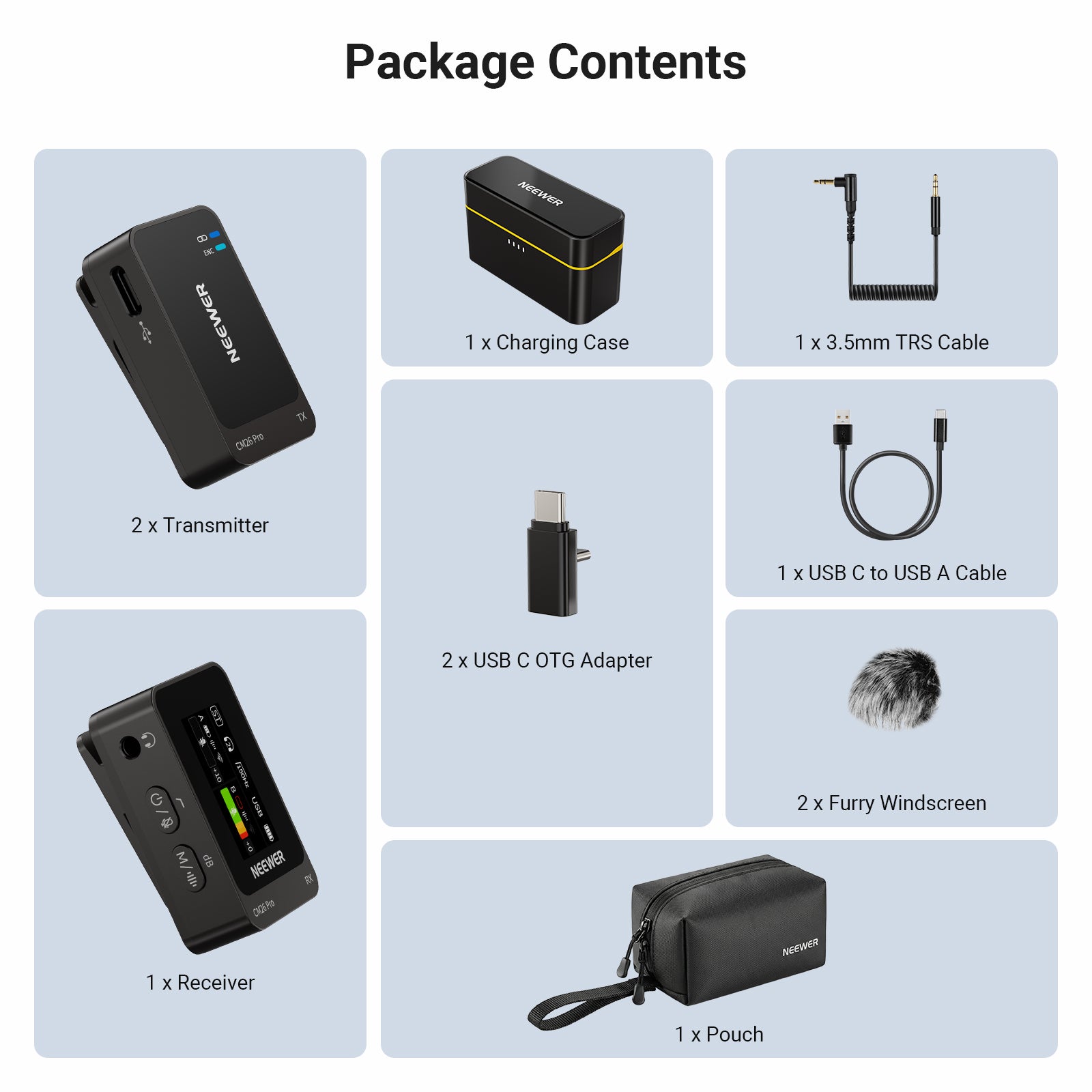Sistema de micrófono de solapa inalámbrico NEEWER CM28 PRO con estuche de carga