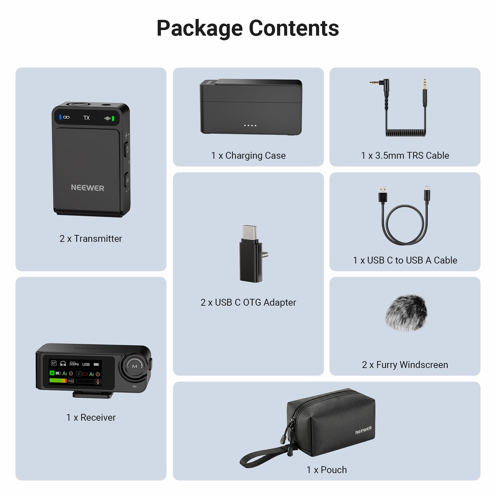Juego de micrófono de solapa inalámbrico NEEWER KM20 para tipo C