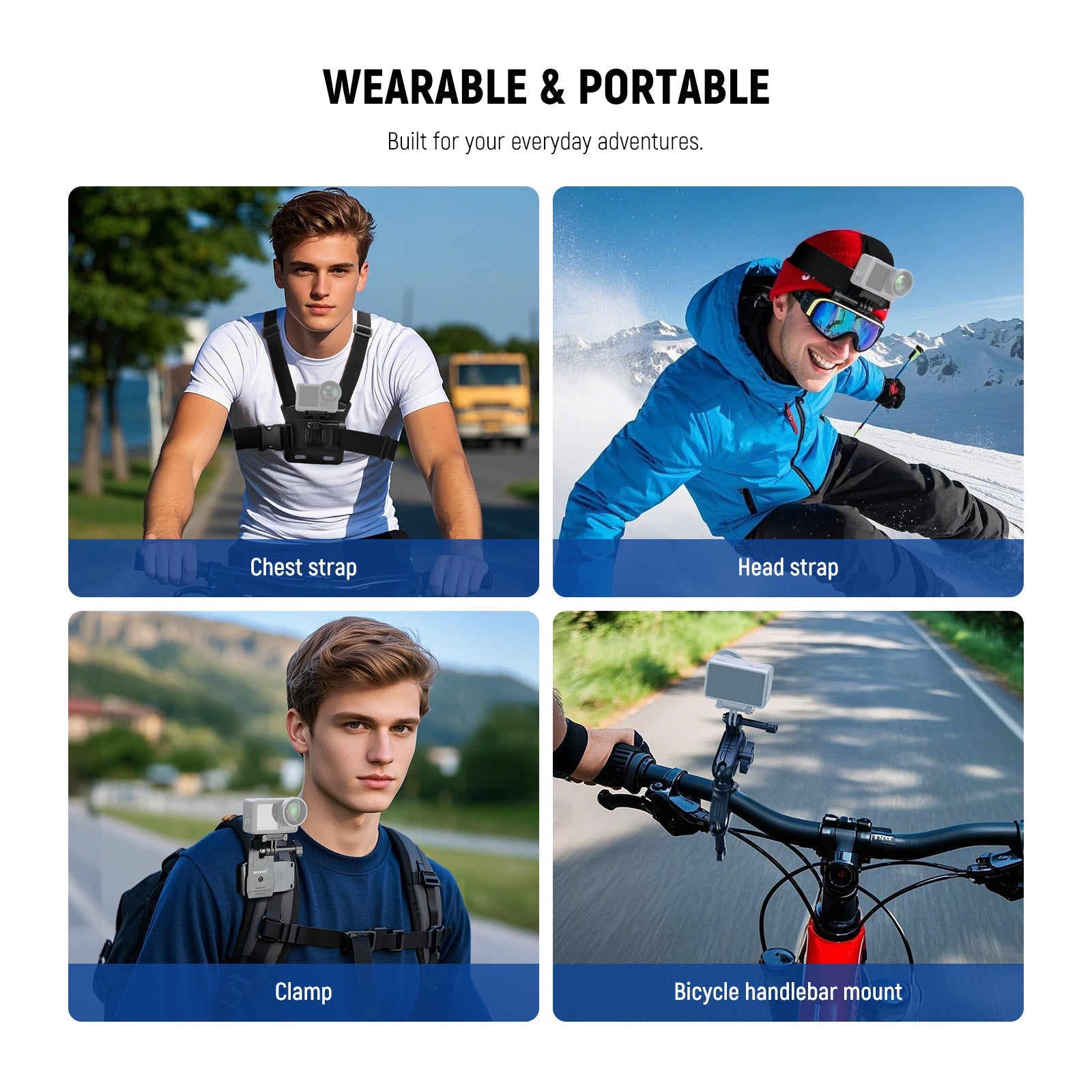 - Para ciclismo y conducción : toma fotos en primera persona mientras conduces con el soporte para manillar de motocicleta/bicicleta, la correa de pecho, el adaptador y la correa de muñeca con base de montaje incluidos en el kit, compatible con GoPro Insta360, GO 3 e Insta 360 x4. Sujeta tu cámara con seguridad para grabar tu viaje. El arnés de pecho se ajusta a la mayoría de las tallas. Graba vídeos en el coche con el soporte con ventosa para parabrisas, tanto interior como exterior. El soporte para salpicadero con ventosa ofrece una fuerte succión para una sujeción firme.