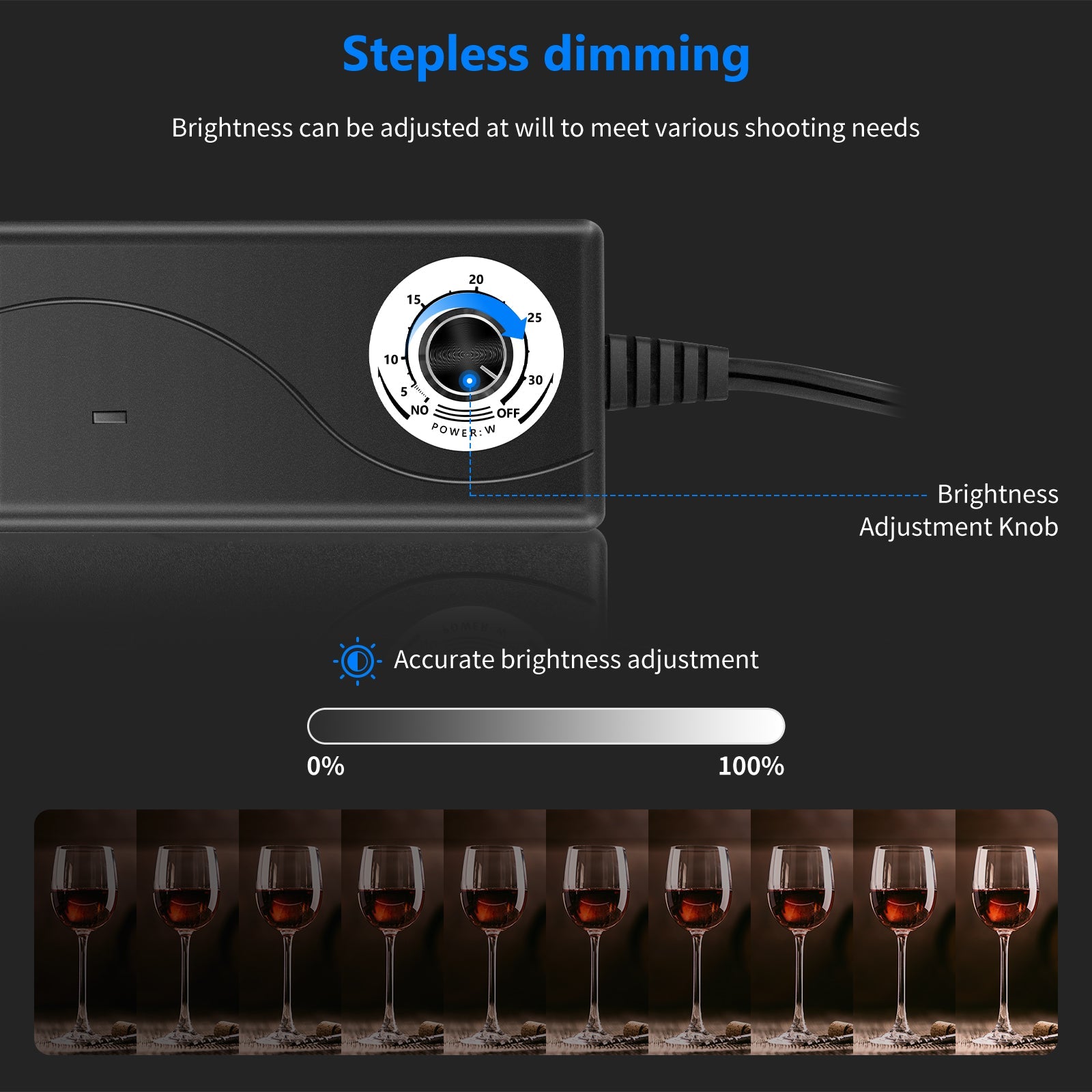 - Adjustable Brightness- Easily adjust the brightness of the LED lights by tweaking the brightness adjustment knob. Capture high-quality photos with desired intensity using your camera or smartphone.