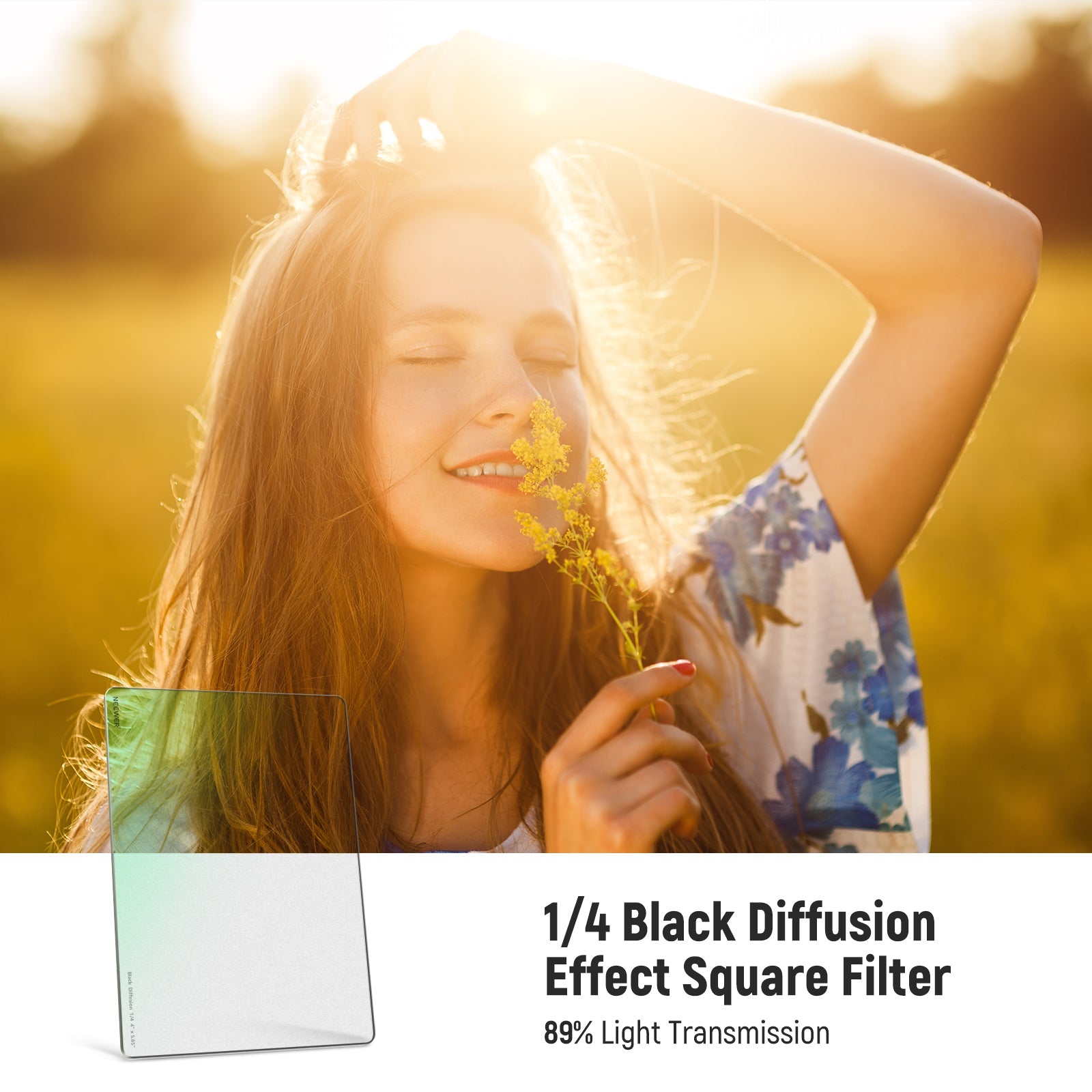 NEEWER 1/4 Black Diffusion Mist Dreamy Effect 4"x5.65" Square Filter