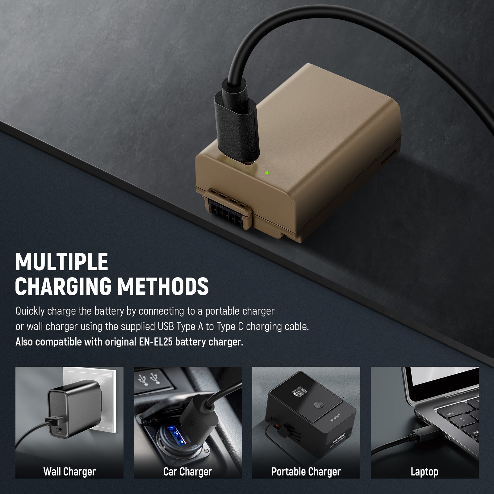 - Replacement Battery for Nikon EN-EL25- This EN-EL25 is fully compatible with Nikon Zfc Z30 Z50 cameras and MH-32 battery charger. Note: Fully discharge the battery before charging it for the first time.