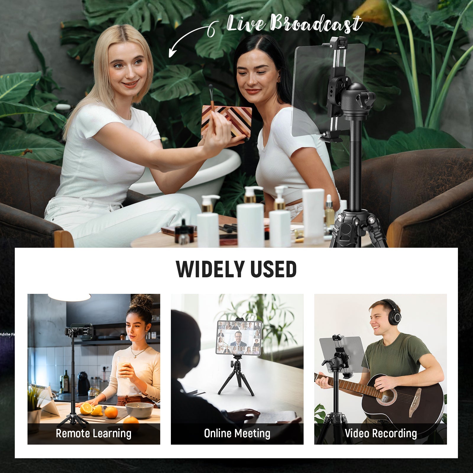 - Extensive Application- Mount your DSLR camera, mirrorless camera, webcam, ring light, and LED video light for product photography, macro photography, overhead photography, video conferencing, live streaming, online teaching, and vlogging. The 24.3oz/680g net weight makes it easy to carry around