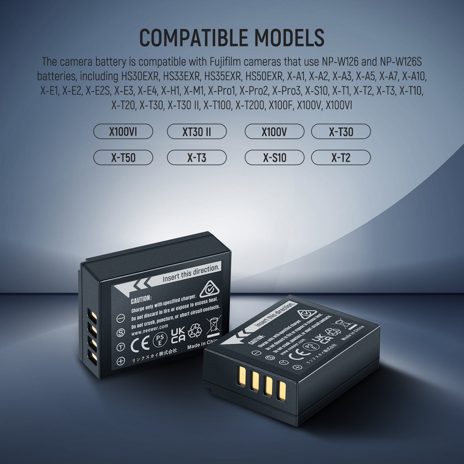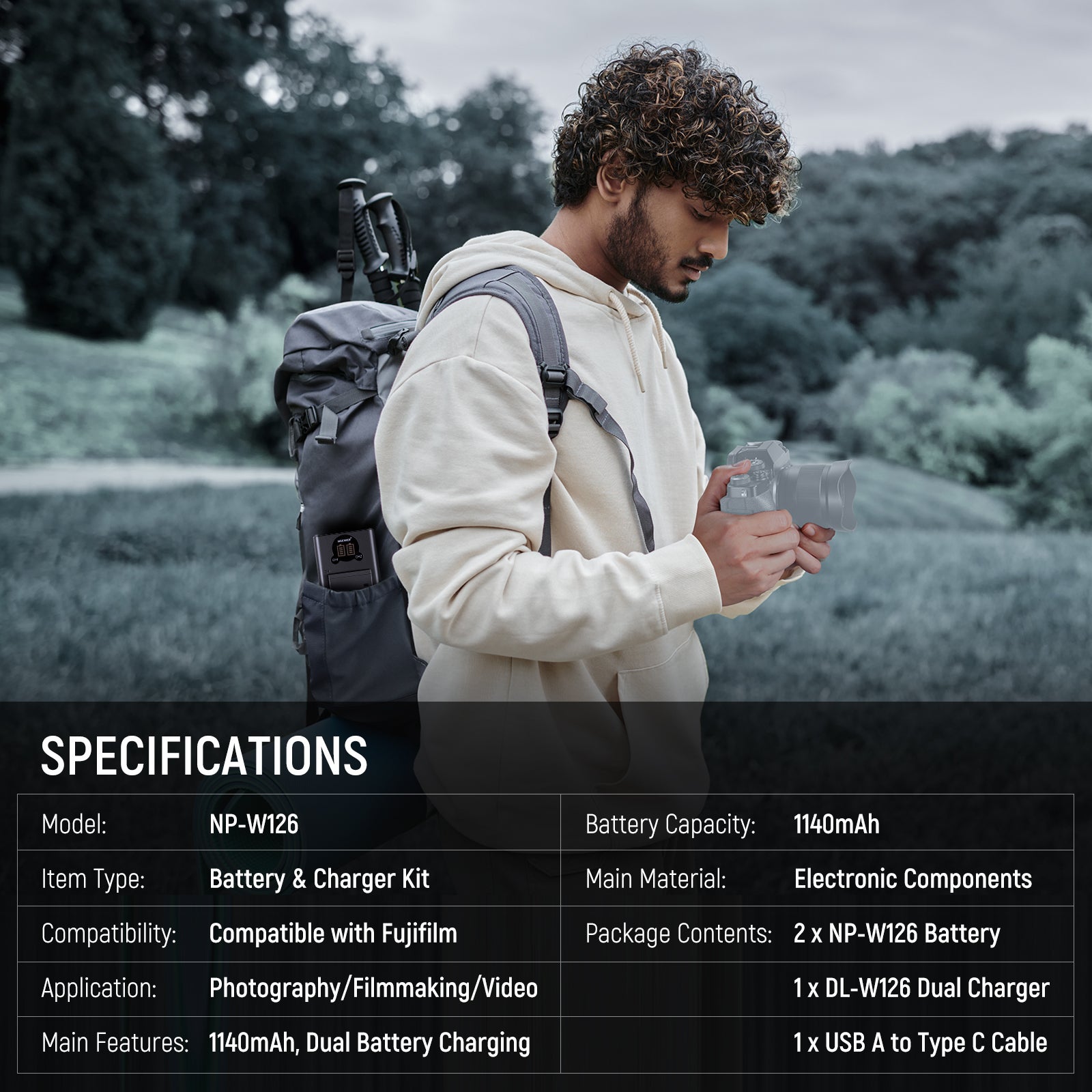 - 2PCS 1140mAh Batteries- With a capacity of 1140mAh, NEEWER replacement NP-W126 battery provides consistent and reliable power to ensure extended photo & video sessions. These two batteries are the perfect choice for you to use and replace, freeing your mind from power concerns as you capture events, landscapes, products, or portraits