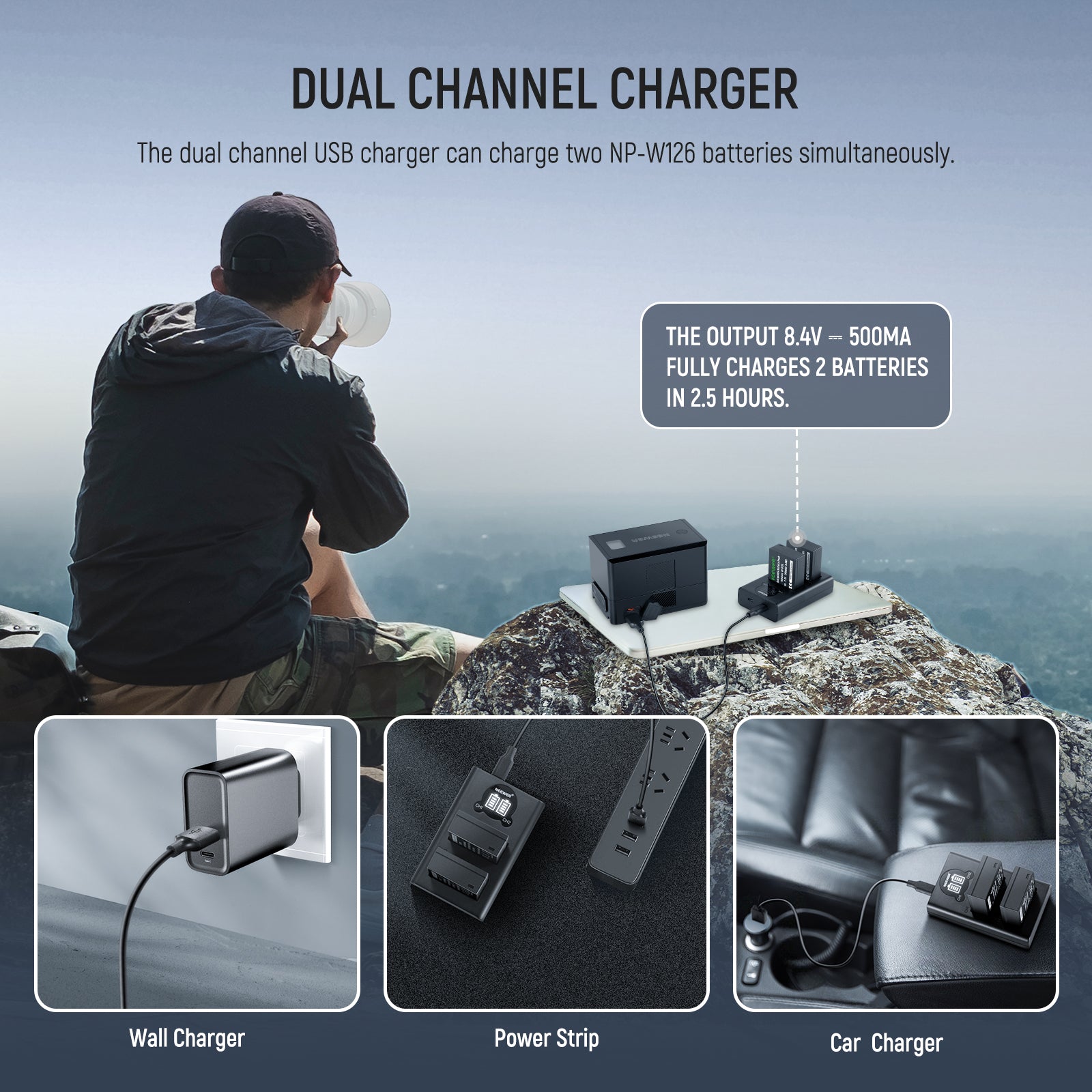 - Dual Battery Charger- The dual battery charger for NP-W126S NPW126 allows you to charge two compatible batteries simultaneously using the included USB C cable. You can connect it to any USB power source, such as a wall adapter and portable charger, to ensure that your batteries are always powered up and ready for use on the go